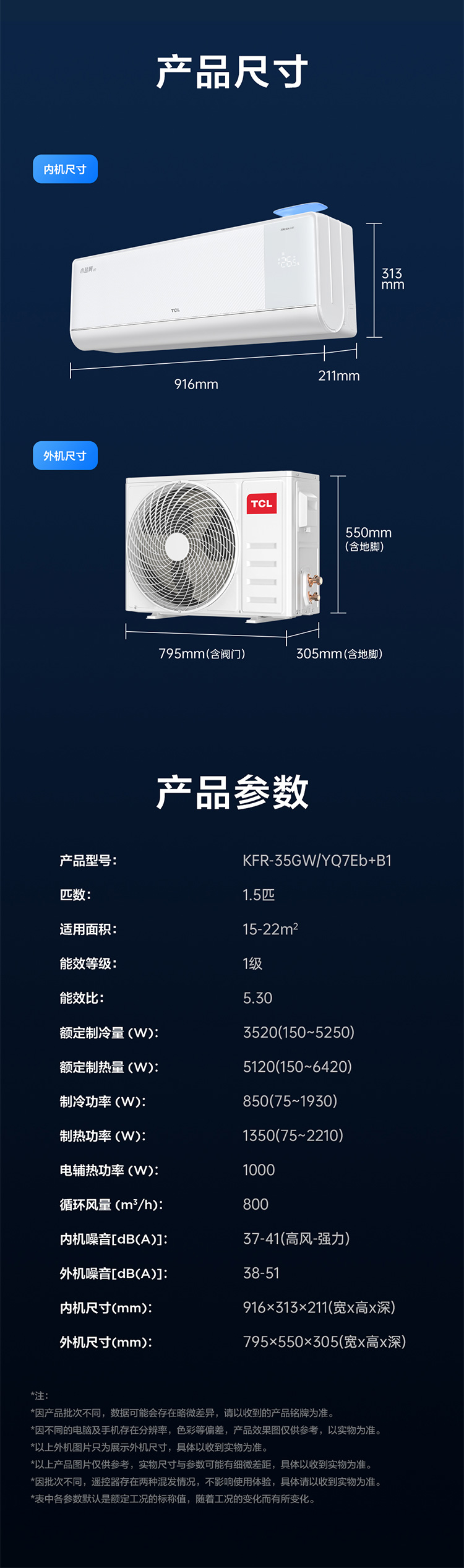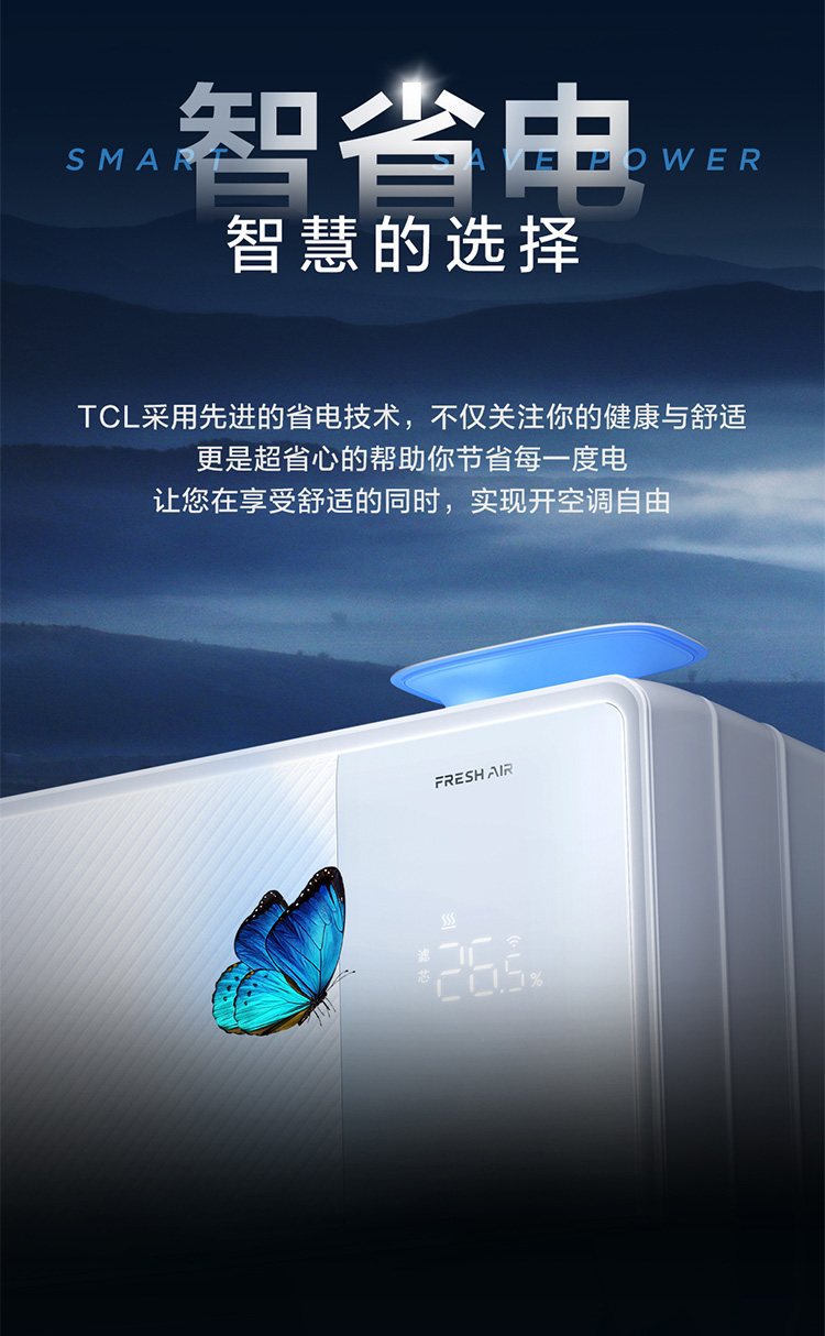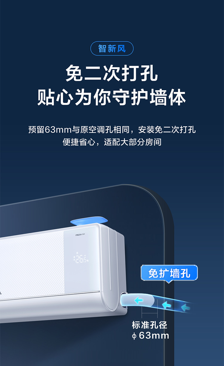 【新品上市】 1.5匹小蓝翼Q7 AI健康空调 40m³/h新风量节能冷暖新风KFR-35GW/YQ7Eb+B1