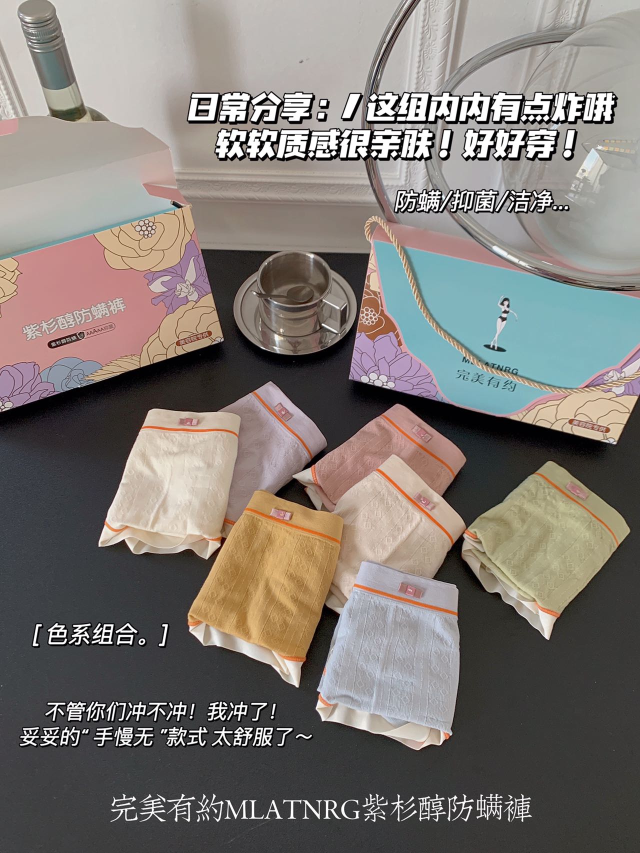 【换季大换新 1周7天不重样】紫杉醇防螨裤 完美有约女士内裤礼盒装 提臀抑jun底档三角裤 40支面料