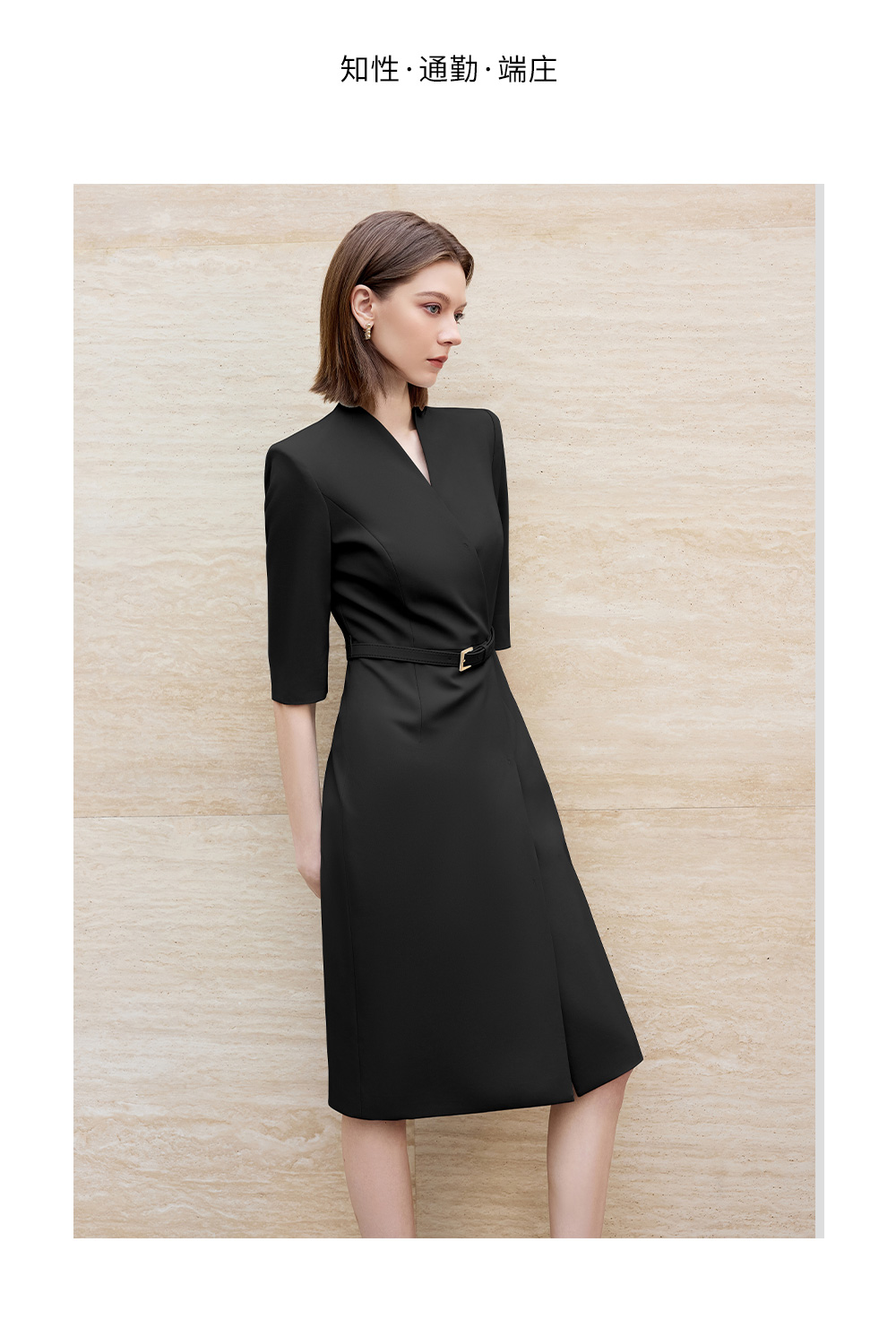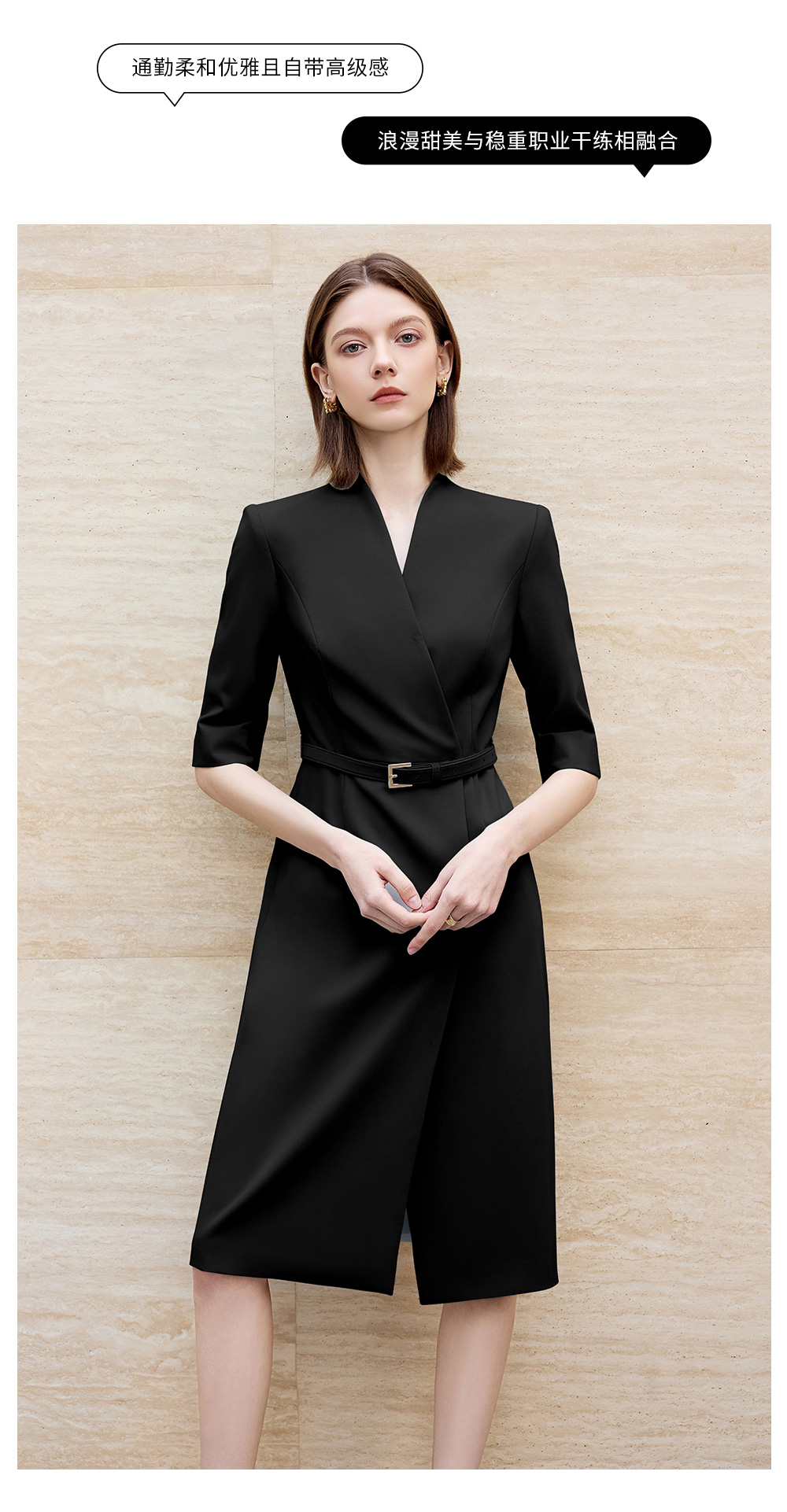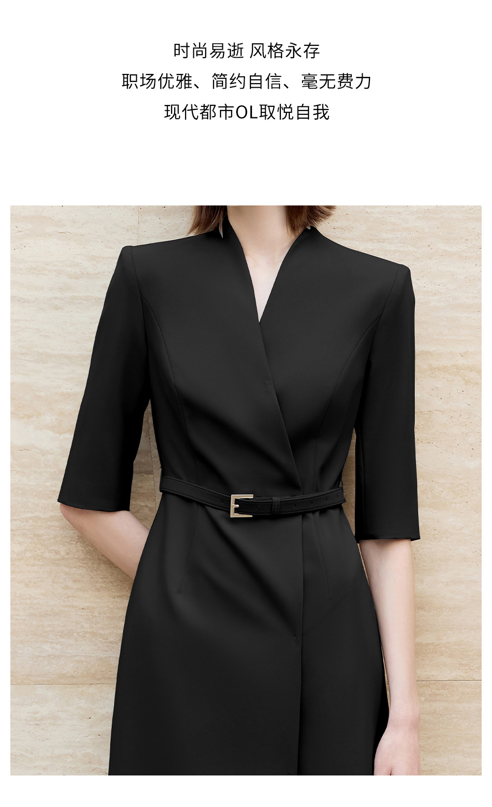 AD气质通勤连衣裙女高级感无领一片式西装连衣裙黑色职业装工作服