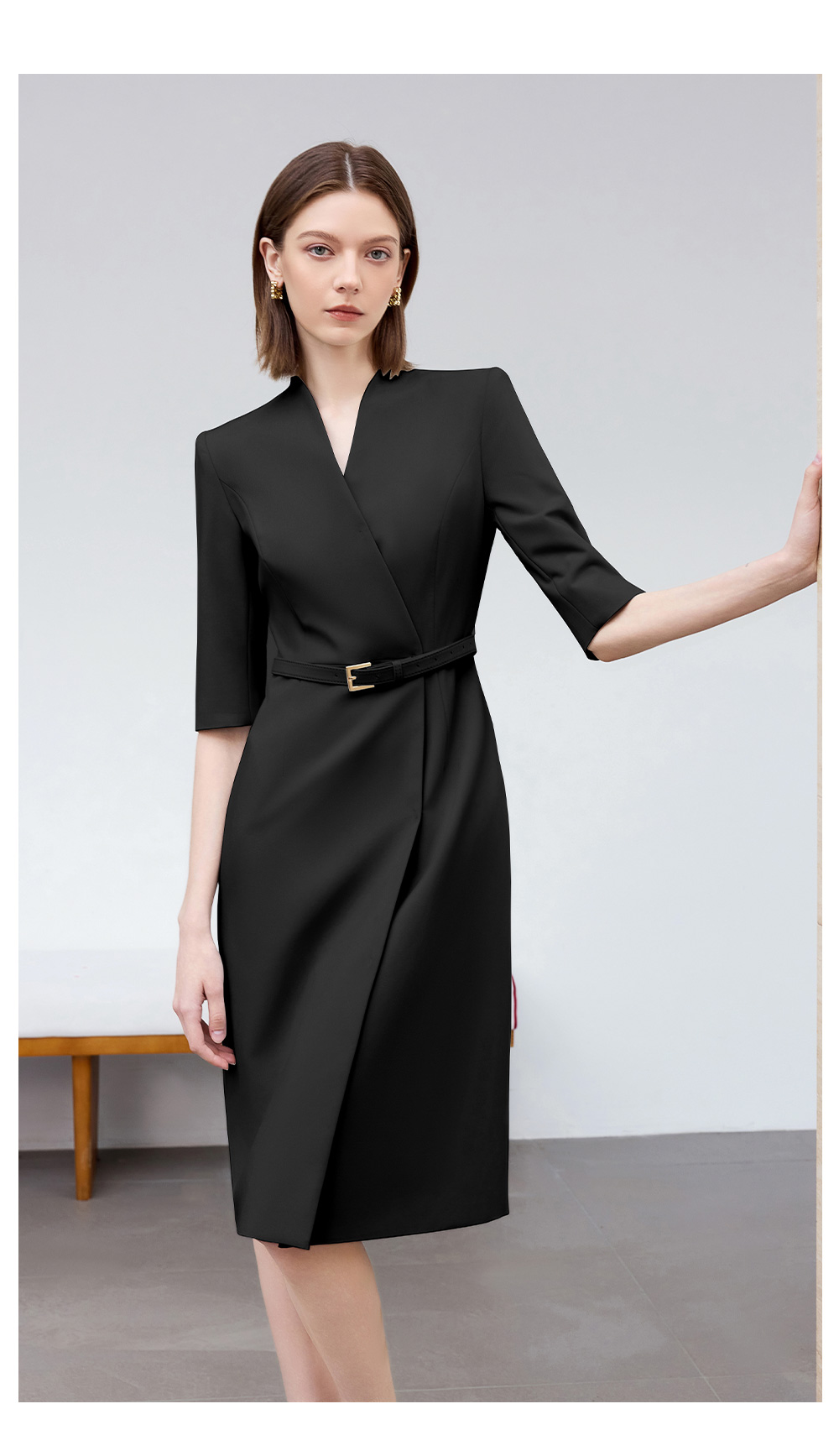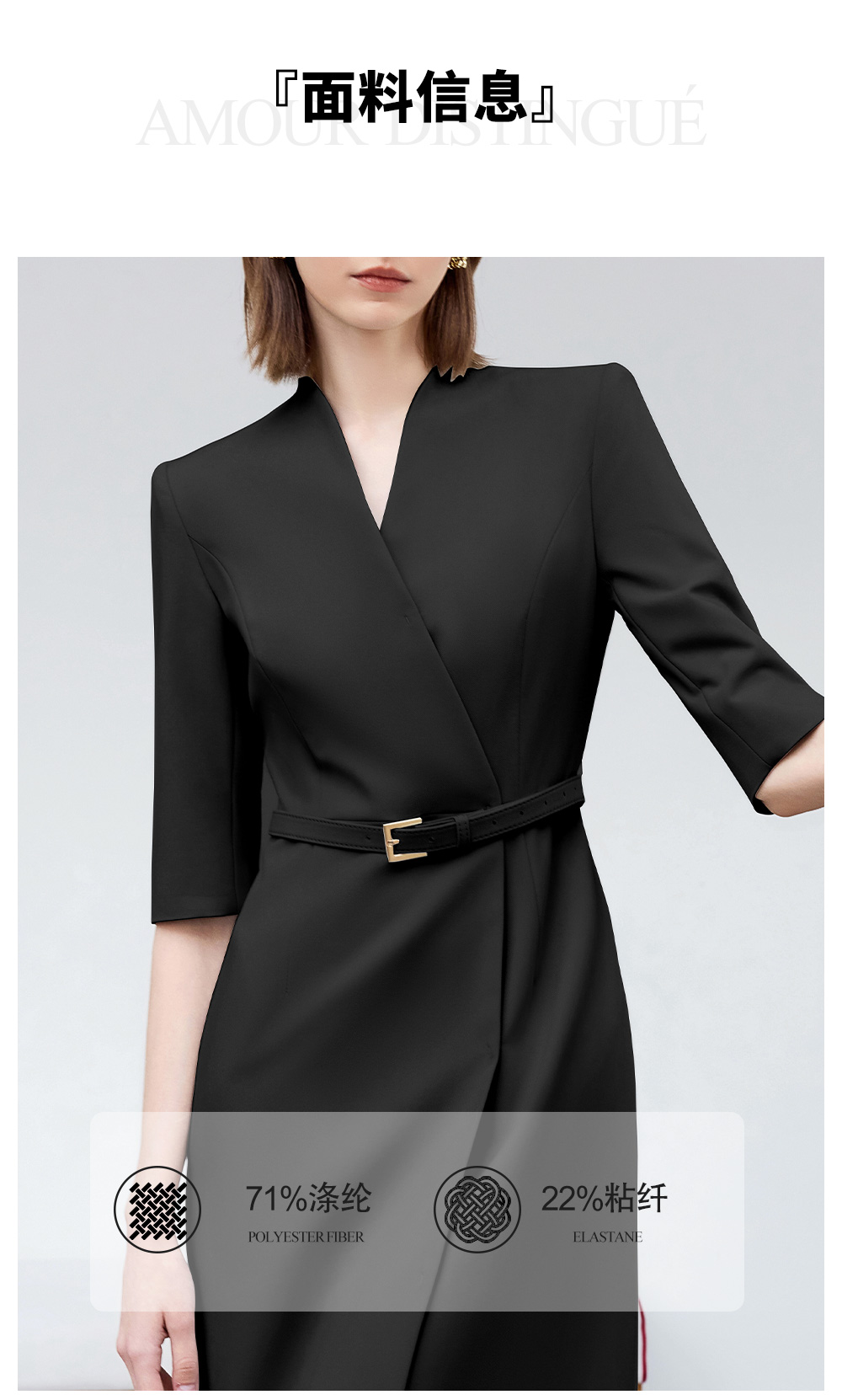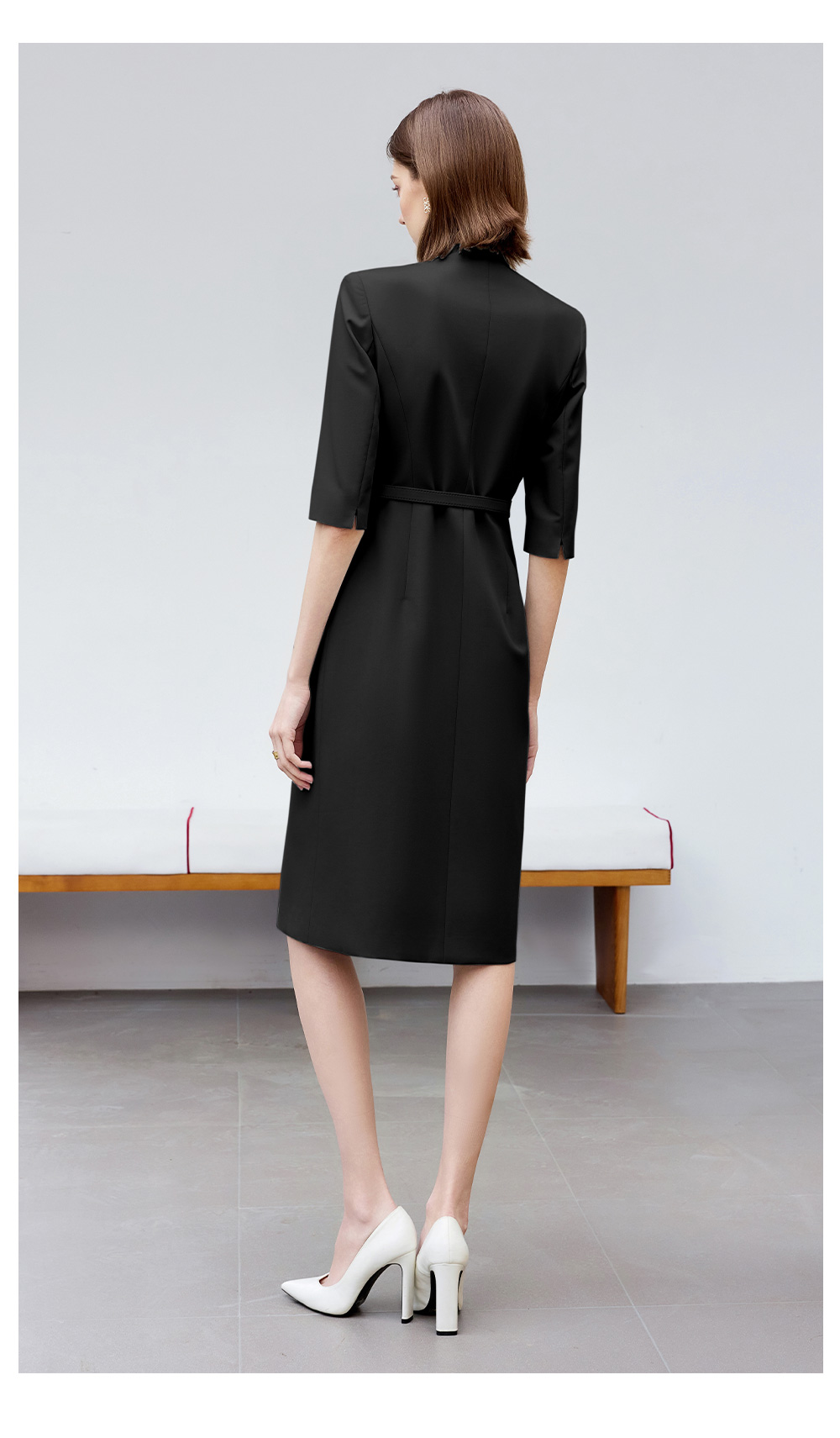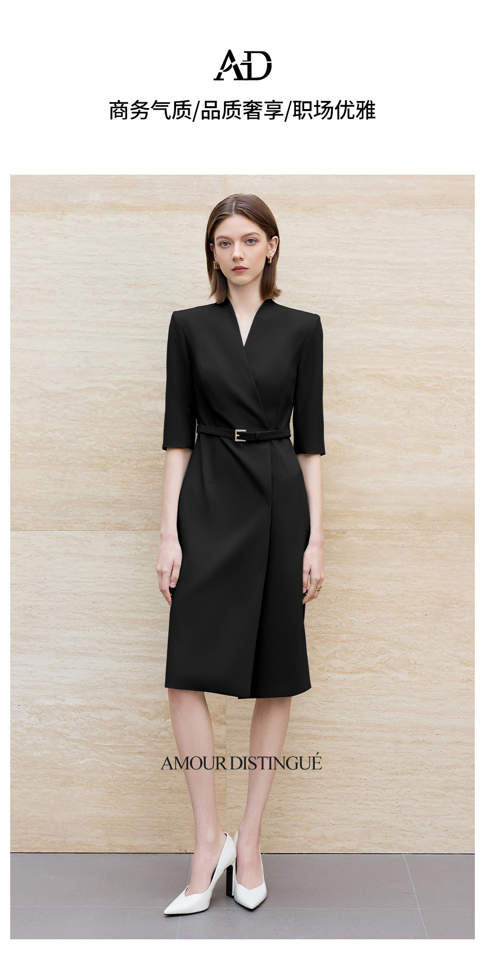 AD气质通勤连衣裙女高级感无领一片式西装连衣裙黑色职业装工作服