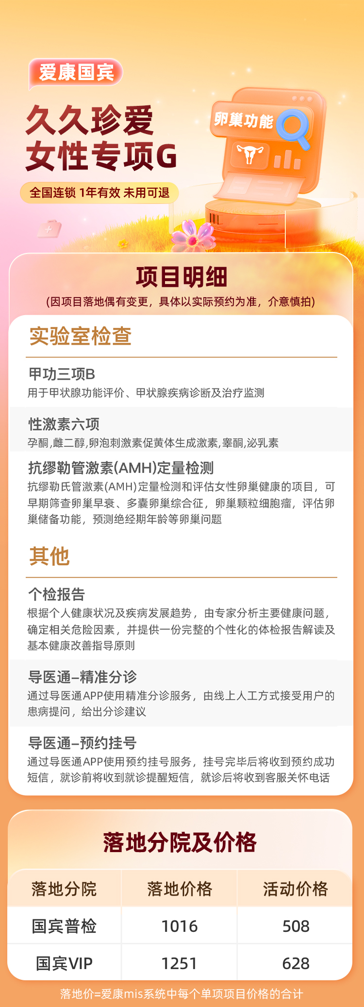 【含AMH卵巢功能+性激素六项+甲功三项】爱康 久久珍爱女性专项G