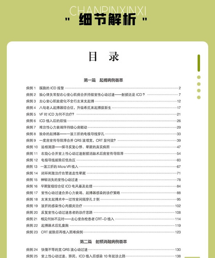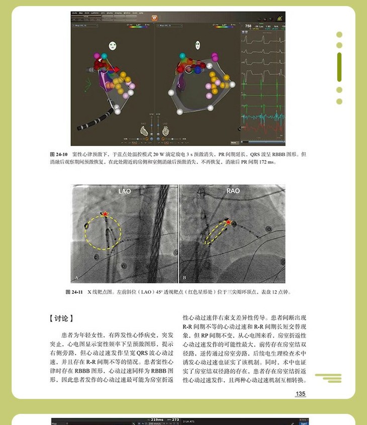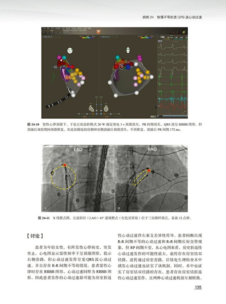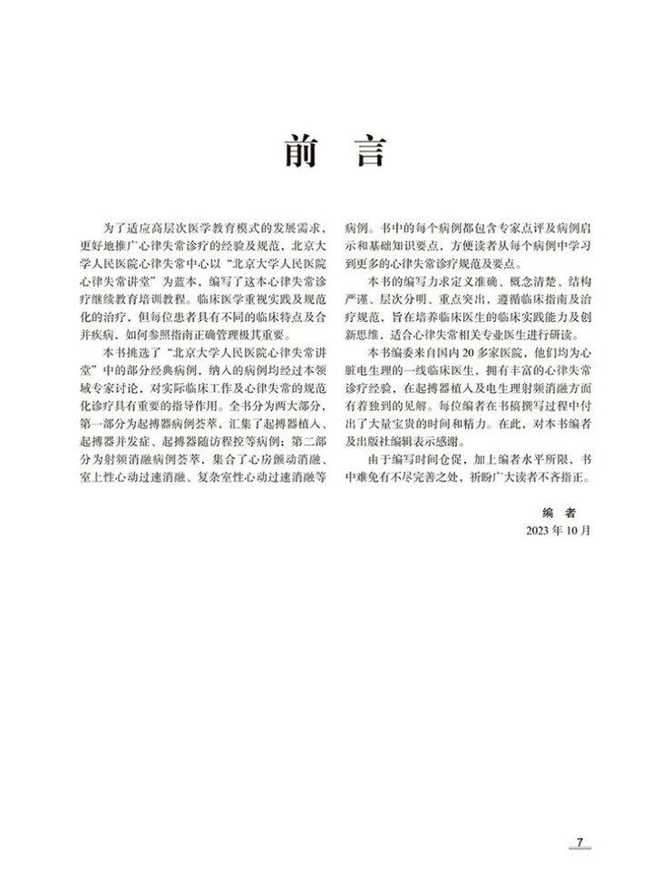 本书以“北京大学人民医院心律失常讲堂”为蓝本,总结了其中的部分经典病例,纳入的病例均经过本领域的专家讨论,对实际临床工作及心律失常的规范化诊疗具有重要的指导作用。全书分为两大部分,第一部分为起搏器病例荟萃,汇集了起搏器植入、起搏器并发症、起搏器随访程控等病例;第二部分为射频消融病例荟萃,集合了心房颤动消融、室上性心动过速消融、复杂室性心动过速消融等病例。书中的每个病例都包含专家点评及病例启示和基础知识要点,方便读者从每个病例中学习到更多的心律失常诊疗规范及要点。