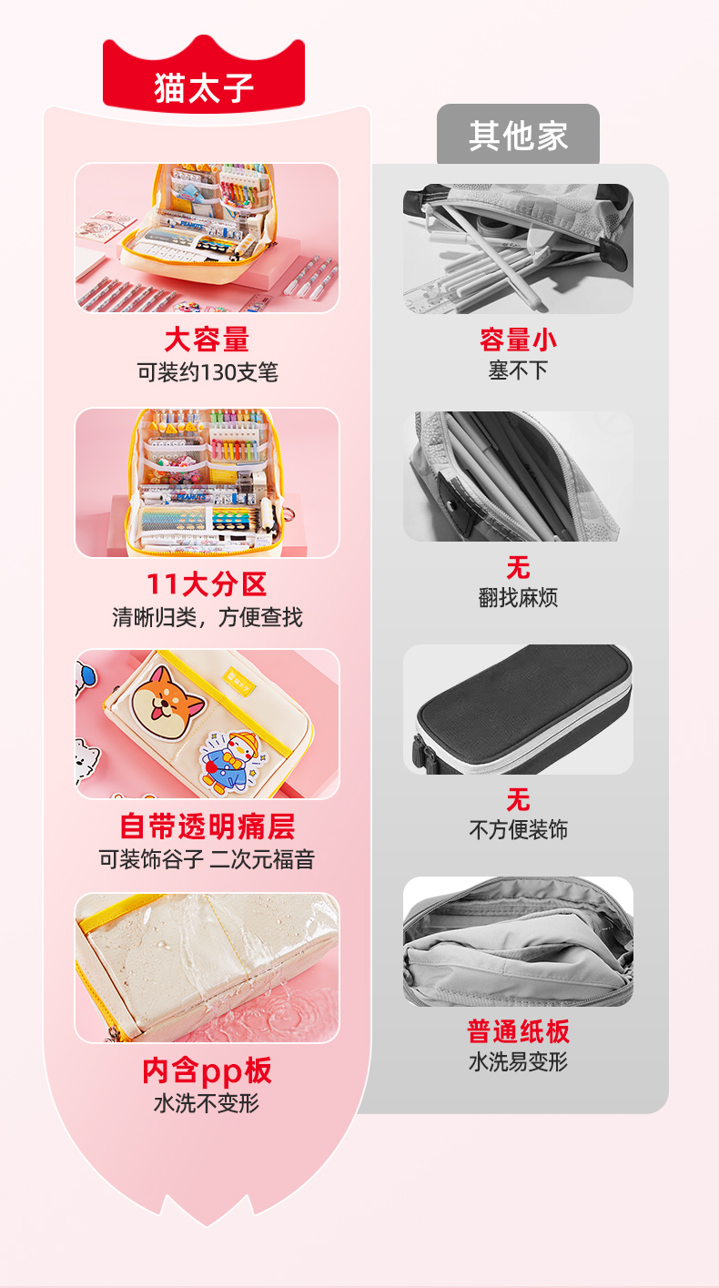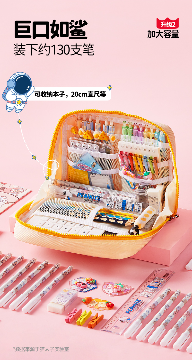 猫太子立式大容量笔袋2025新款文具盒初中生铅笔盒高颜值ins风卡通女孩男孩文具袋简约小学生透明二次元谷子