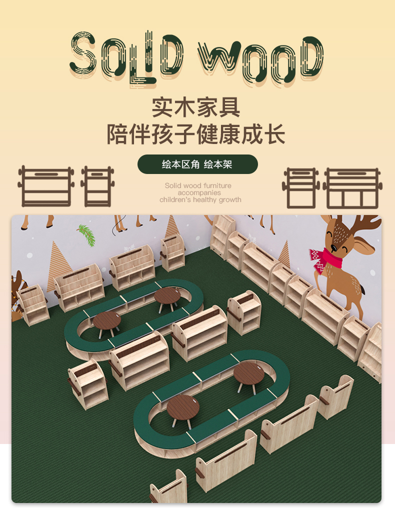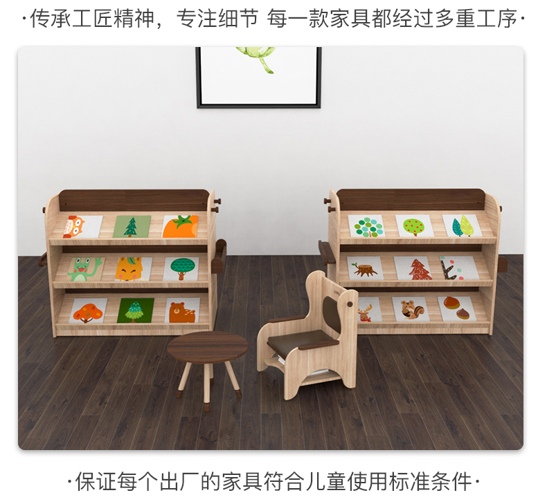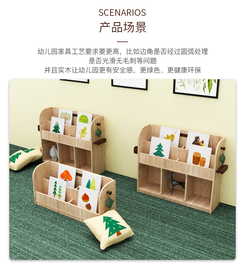 绘本区角 绘本架系列产品 幼儿园柜子实橡木玩具柜