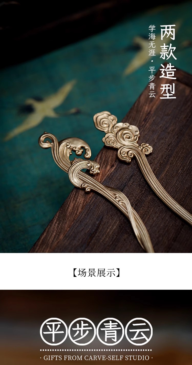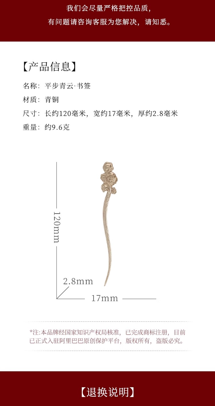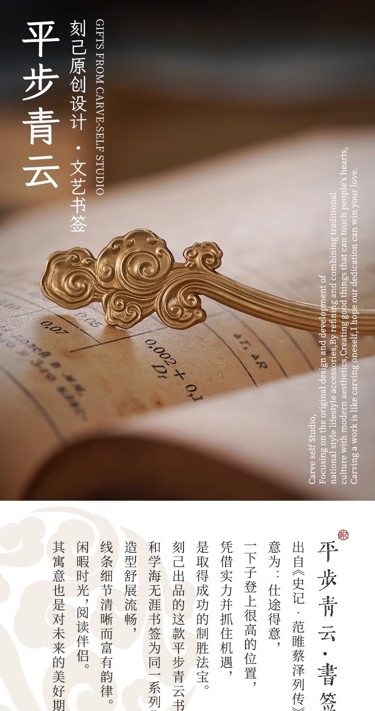 刻己-“平步青云、学海无涯”主题书签 铜银文创 国风金属创意礼物【官方授权 】【48小时发货】