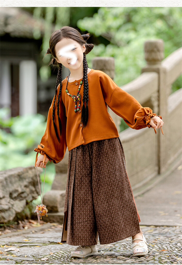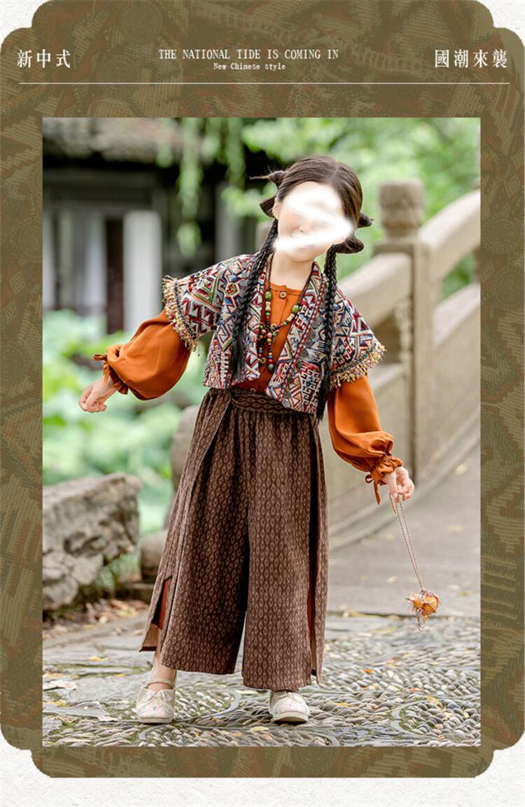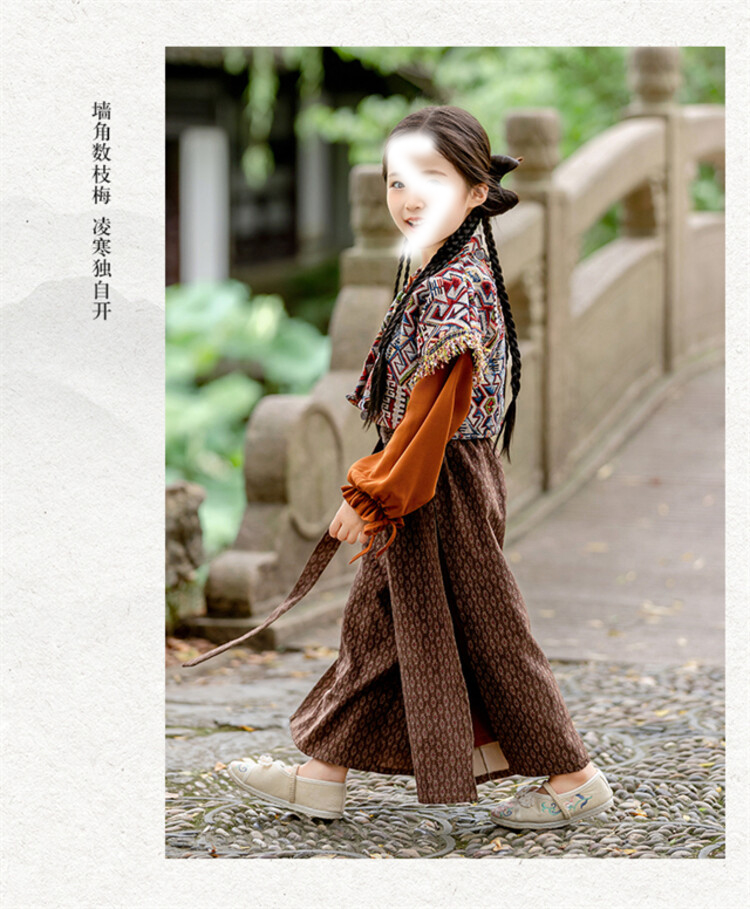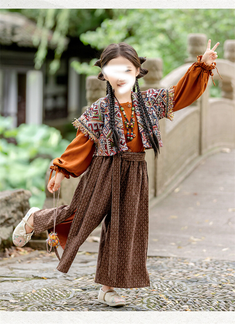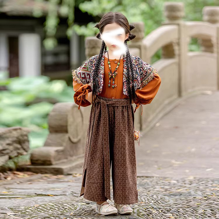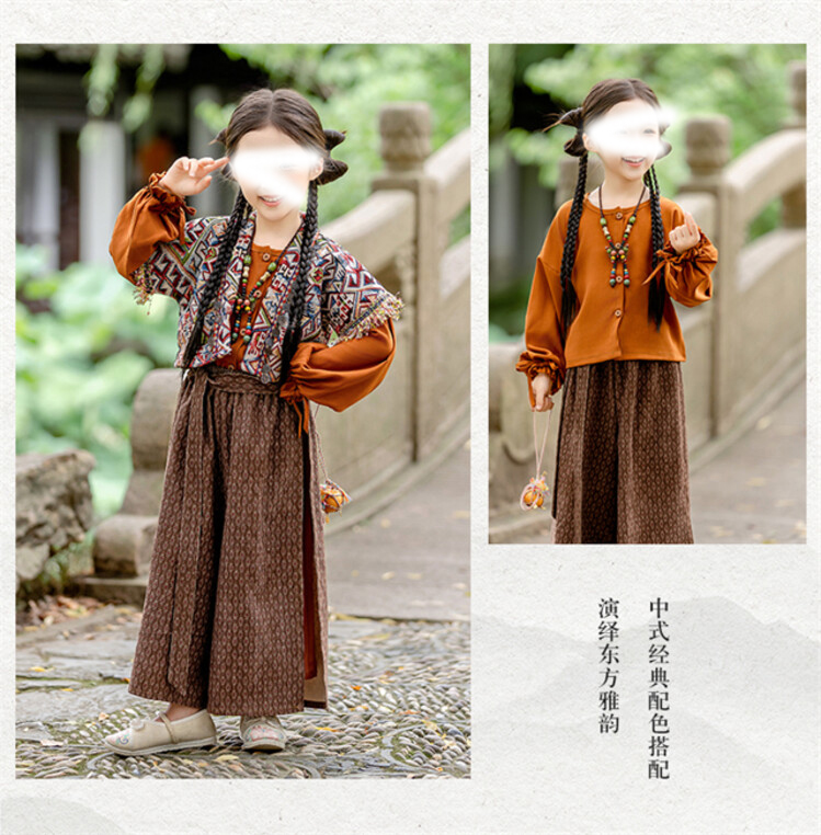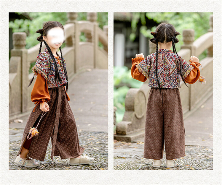 裁缝学苑TQ171汉服三件套纸样儿童外搭衬衣阔腿裤套装样板图纸