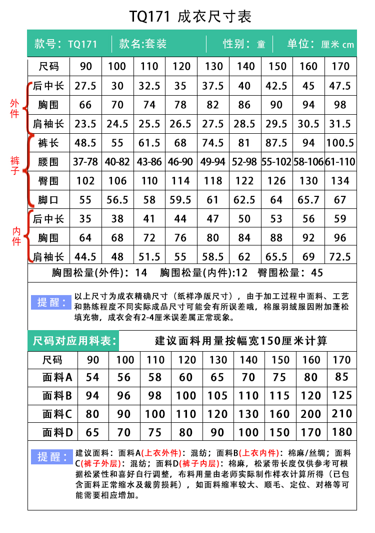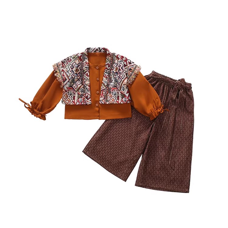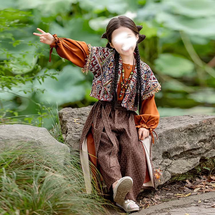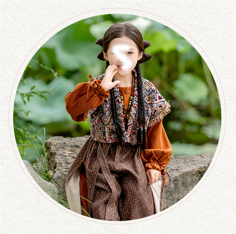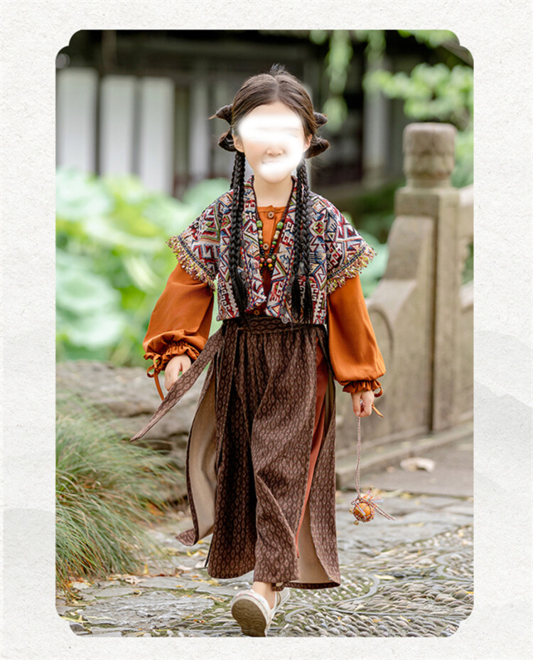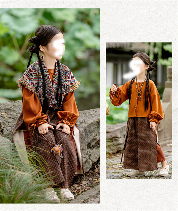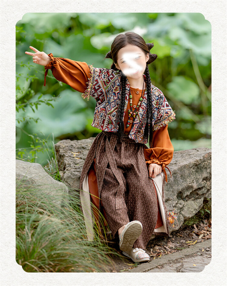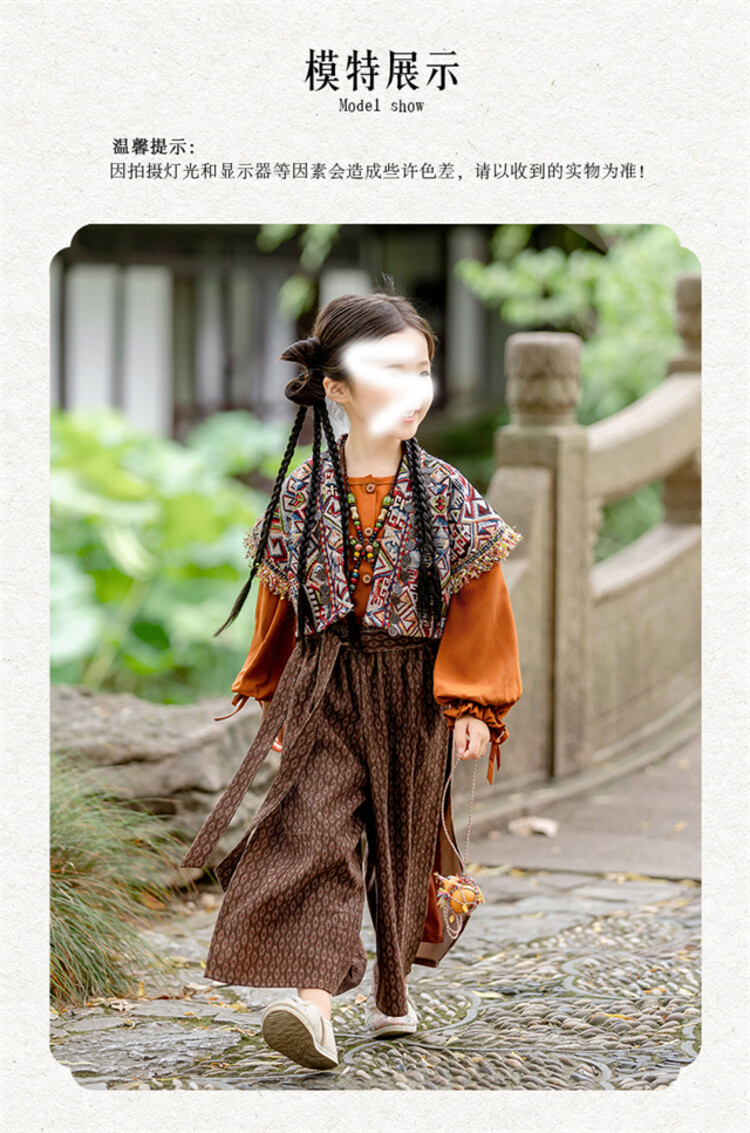 裁缝学苑TQ171汉服三件套纸样儿童外搭衬衣阔腿裤套装样板图纸