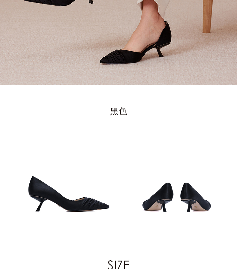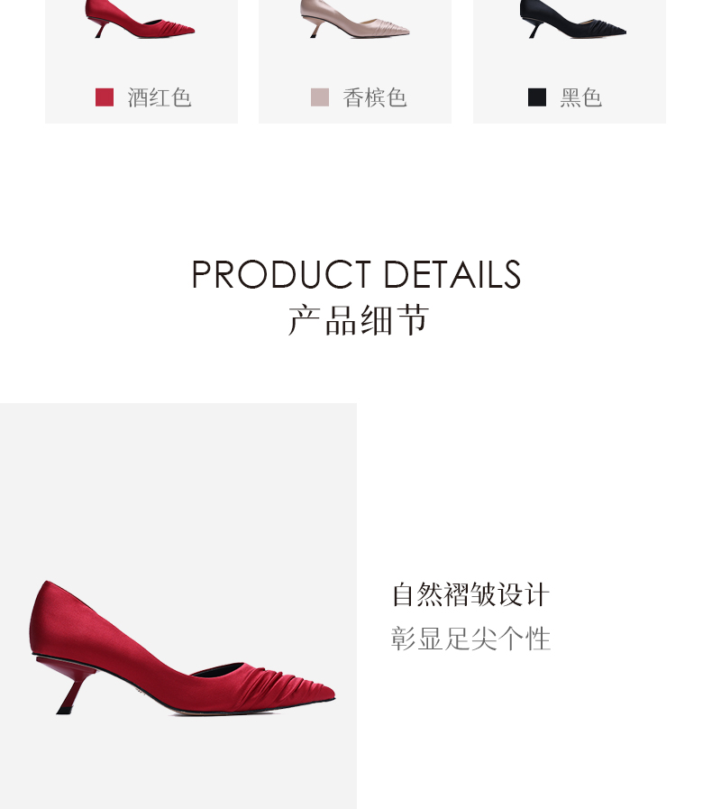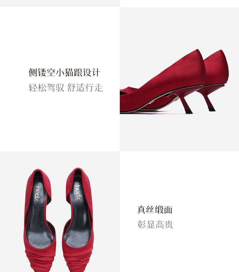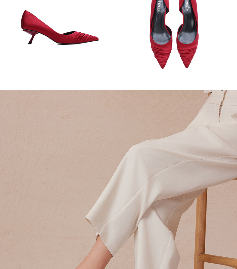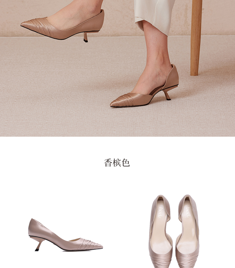 heelz设计师手工鞋履 |小猫跟真丝褶皱单鞋50mm