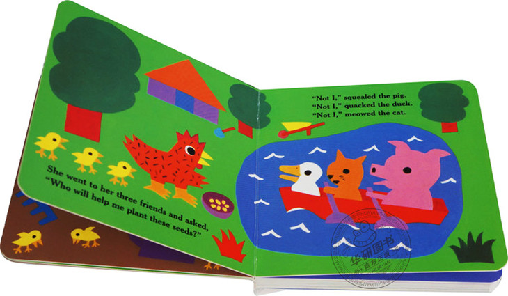The Little Red Hen《小红母鸡》是美国著名插画家拜伦·巴顿专为孩子创作的儿童启蒙纸板书。书中以一只勤劳的红色小母鸡为主角,讲述了它自己种粮食、打麦子、烤面包、喂鸡的故事。小读者们会从这个经典的故事中学到勤奋和团队合作的重要性,同时培养自主阅读的能力。