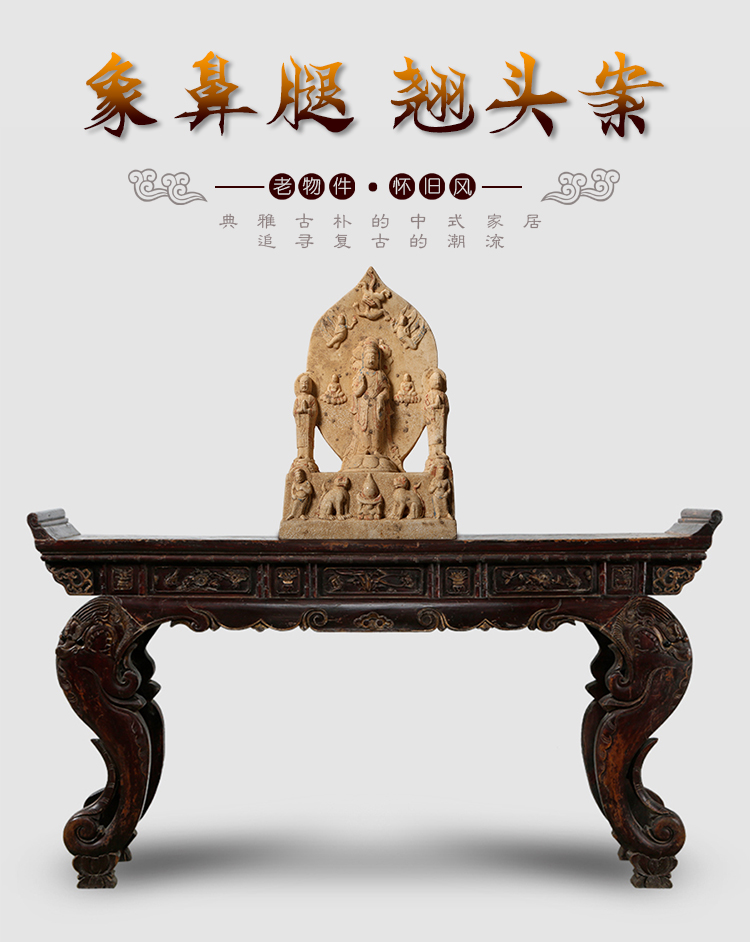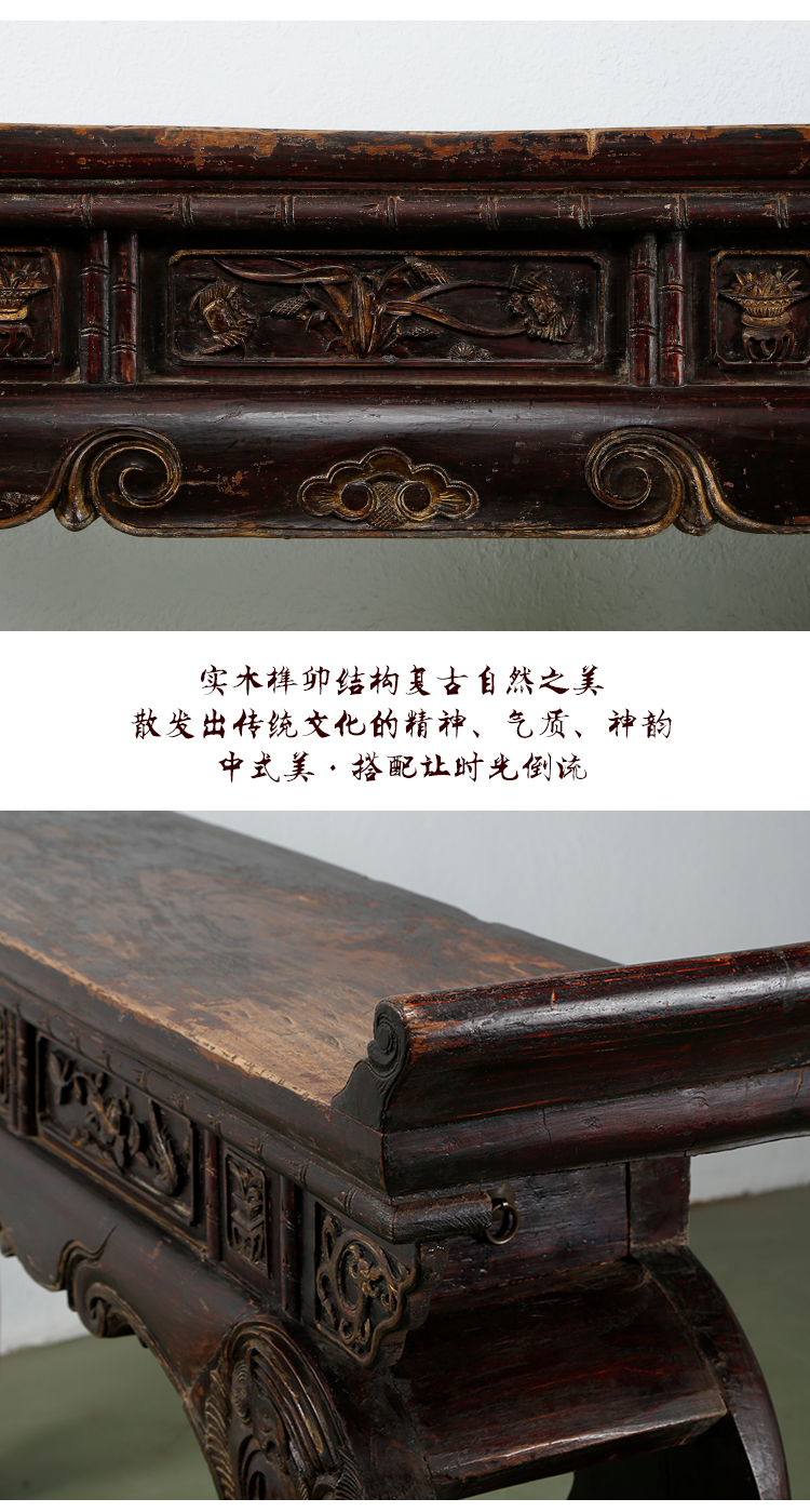 华伦古典家具象鼻腿雕刻条案实木中式玄关桌案台案几供桌书房案老家具