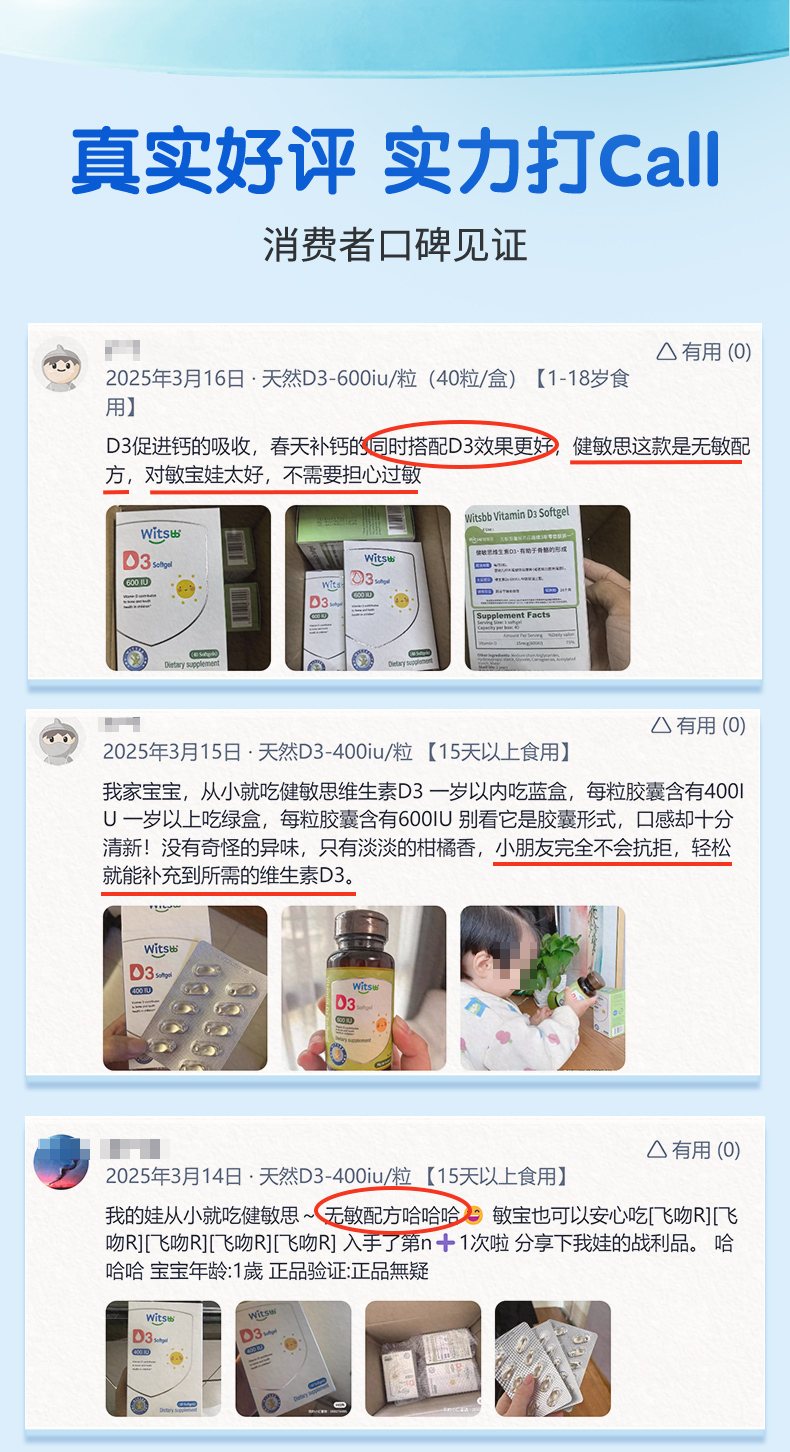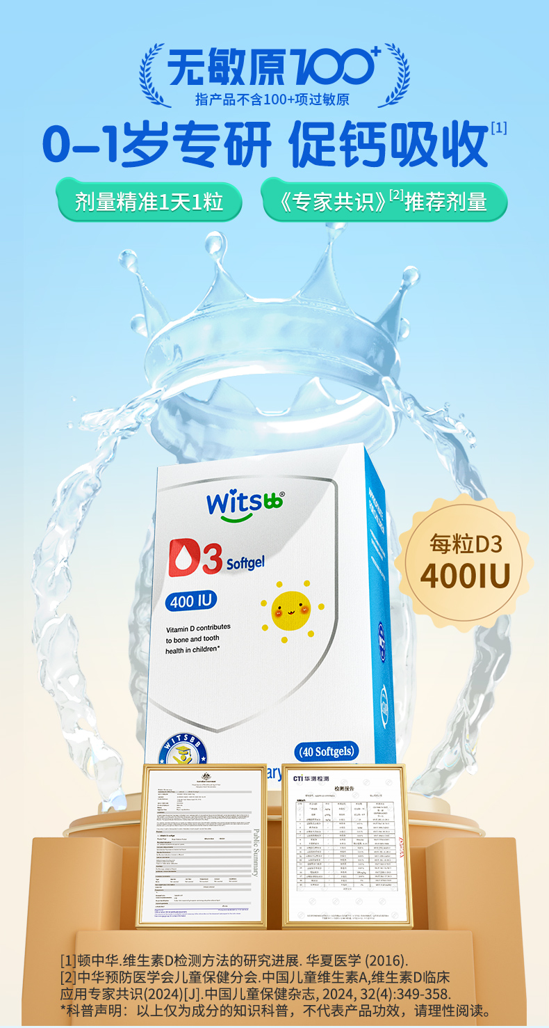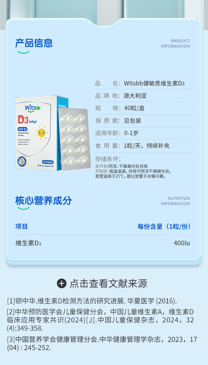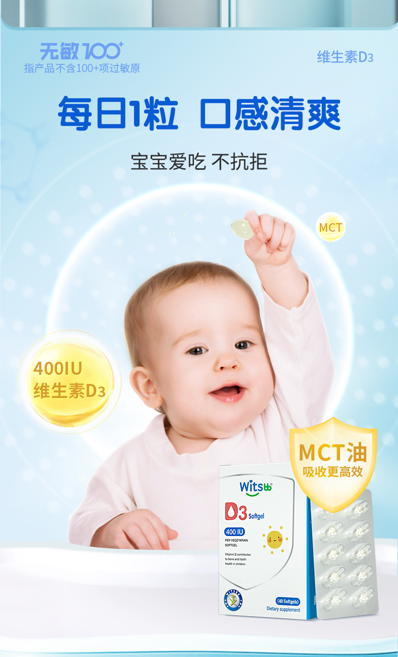 【多sku】witsbb健敏思维生素D3 400iu/粒 40粒/盒·