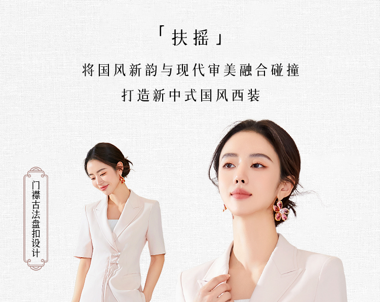 FUYAO扶摇 国风流苏盘扣西装外套女夏季短袖小个子新中式西服上衣