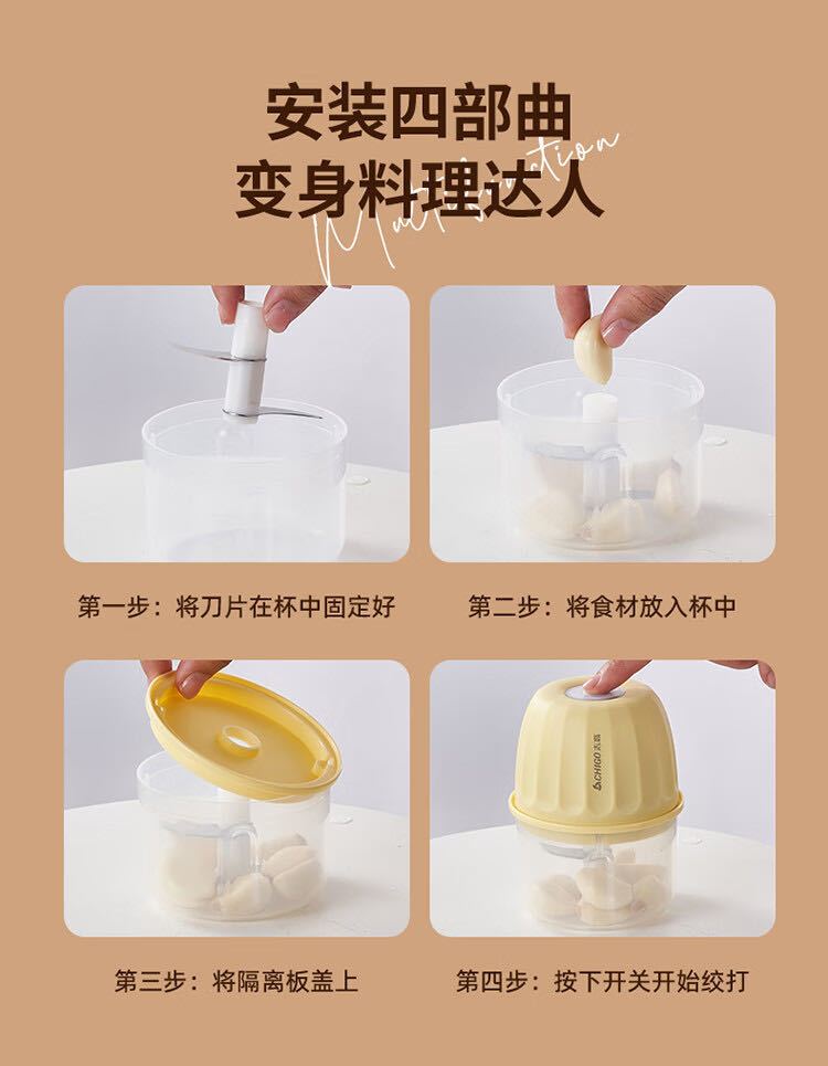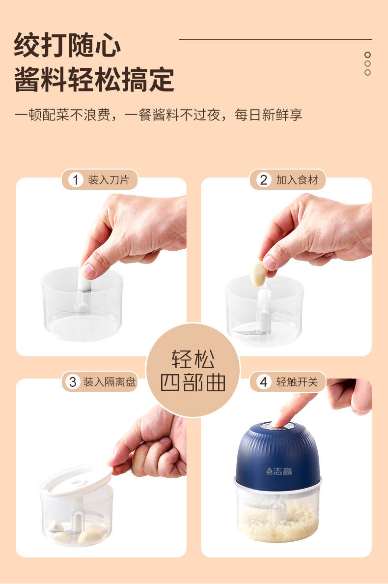 【家居百货】爆款在售5000+厨房料理神器 【志高CHIGO 无线电动食物料理机】 宝宝辅食和居家料理必备无线便携