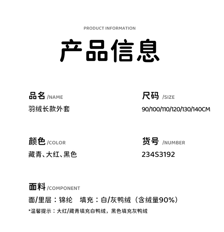 贝贝怡童装冬季新款儿童保暖羽绒服男女童防风抗寒长款连帽外套234S3192