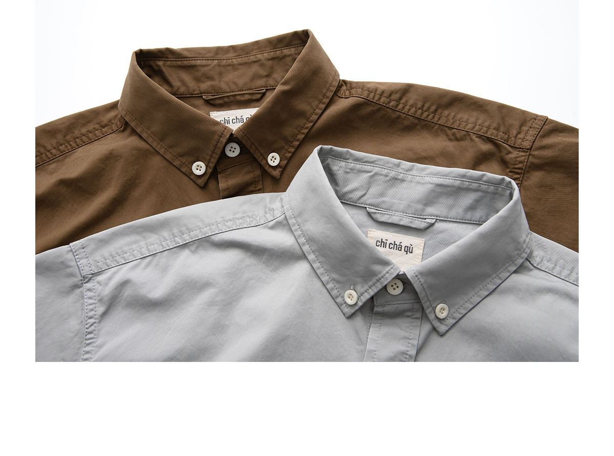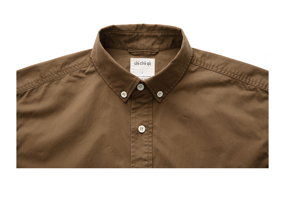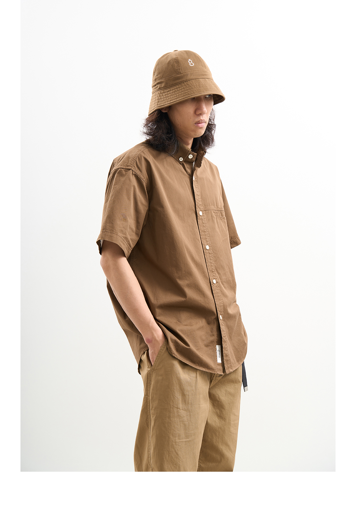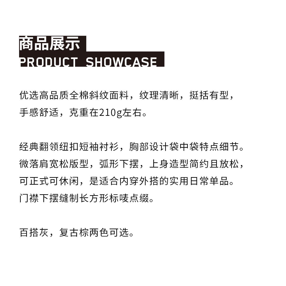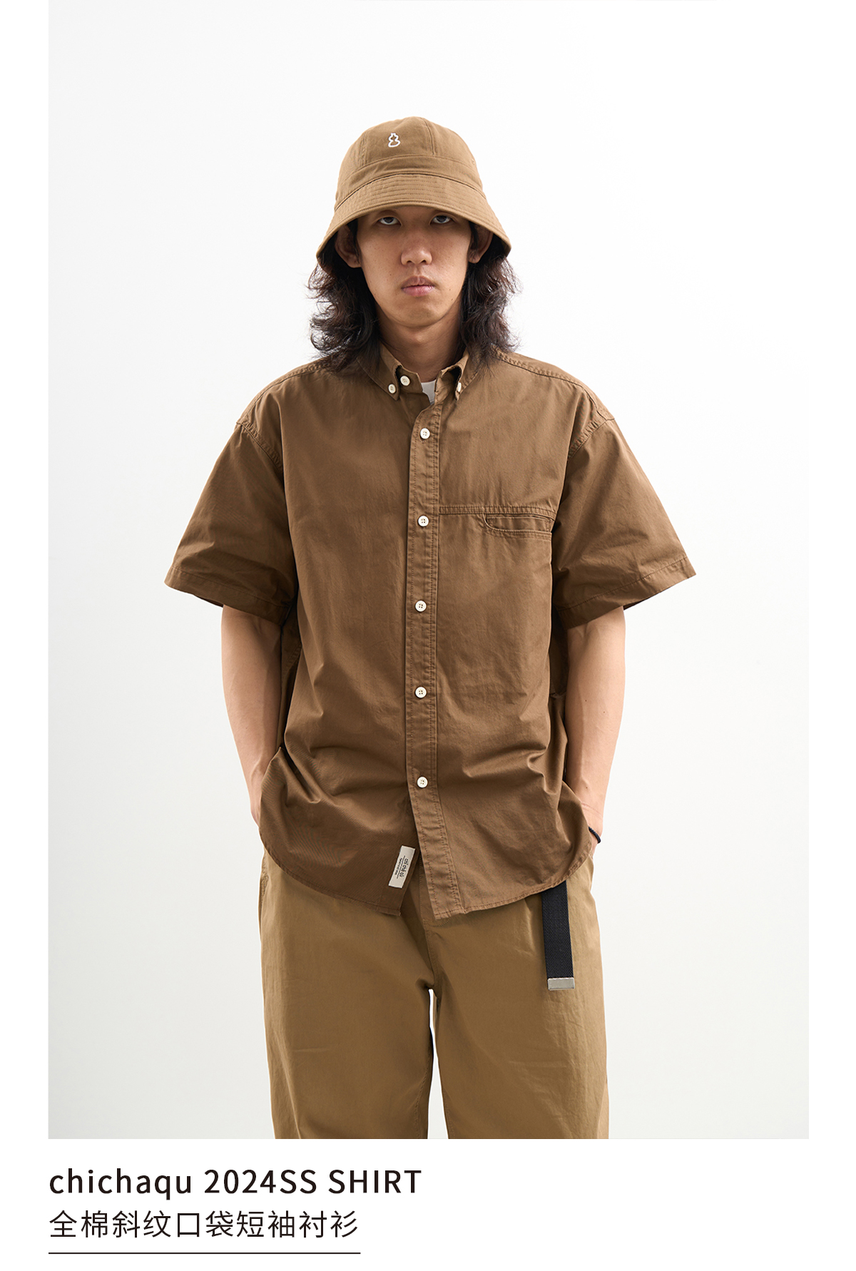 吃茶去chichaqu全棉斜纹口袋短袖衬衫复古经典休闲百搭
