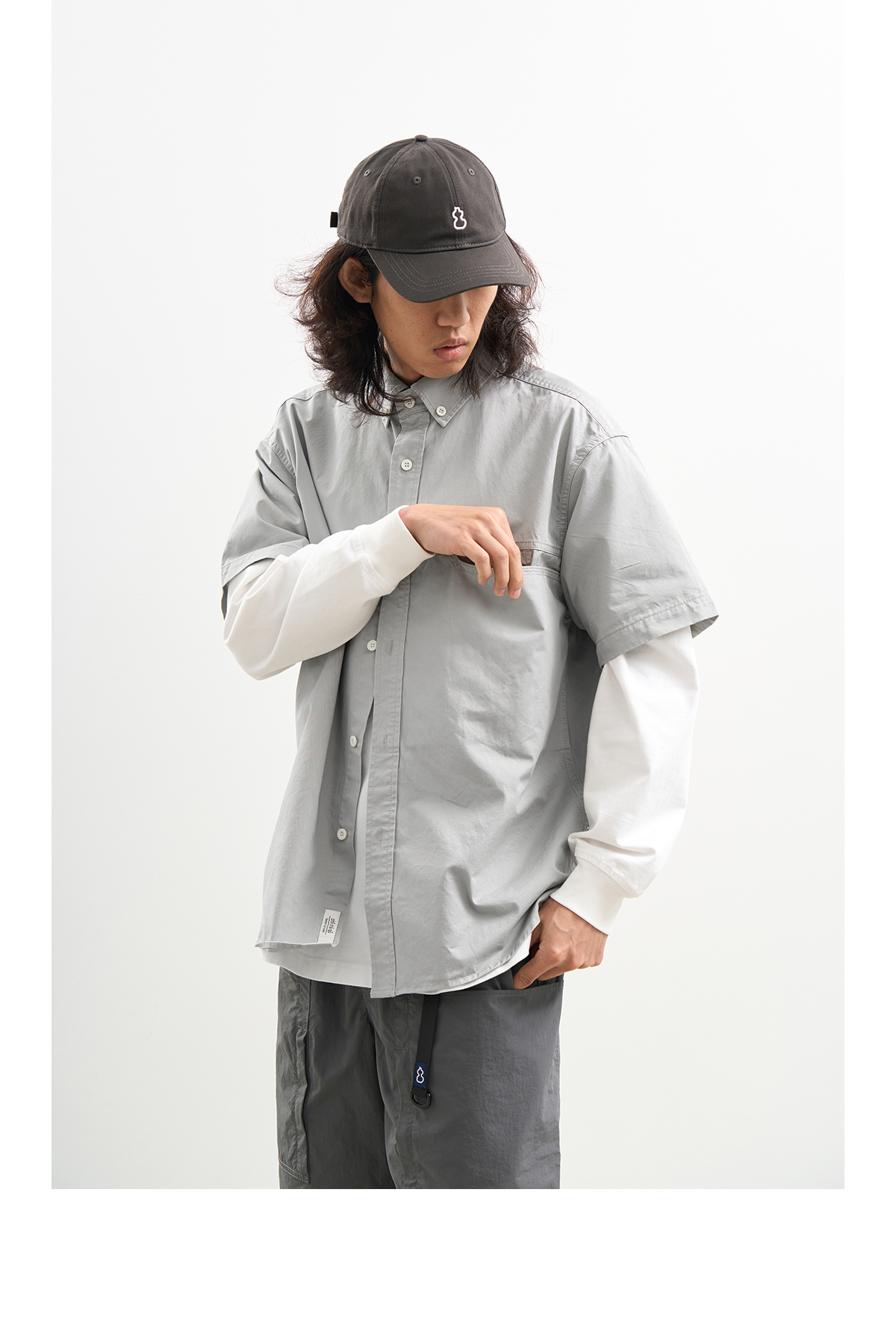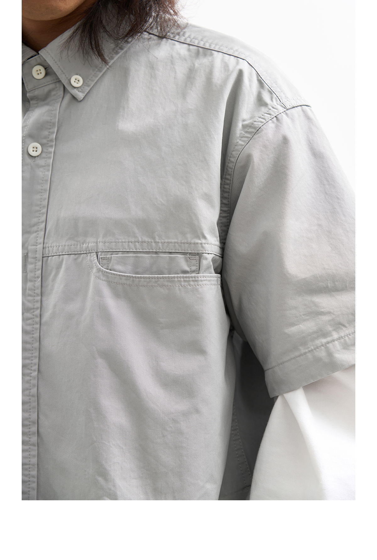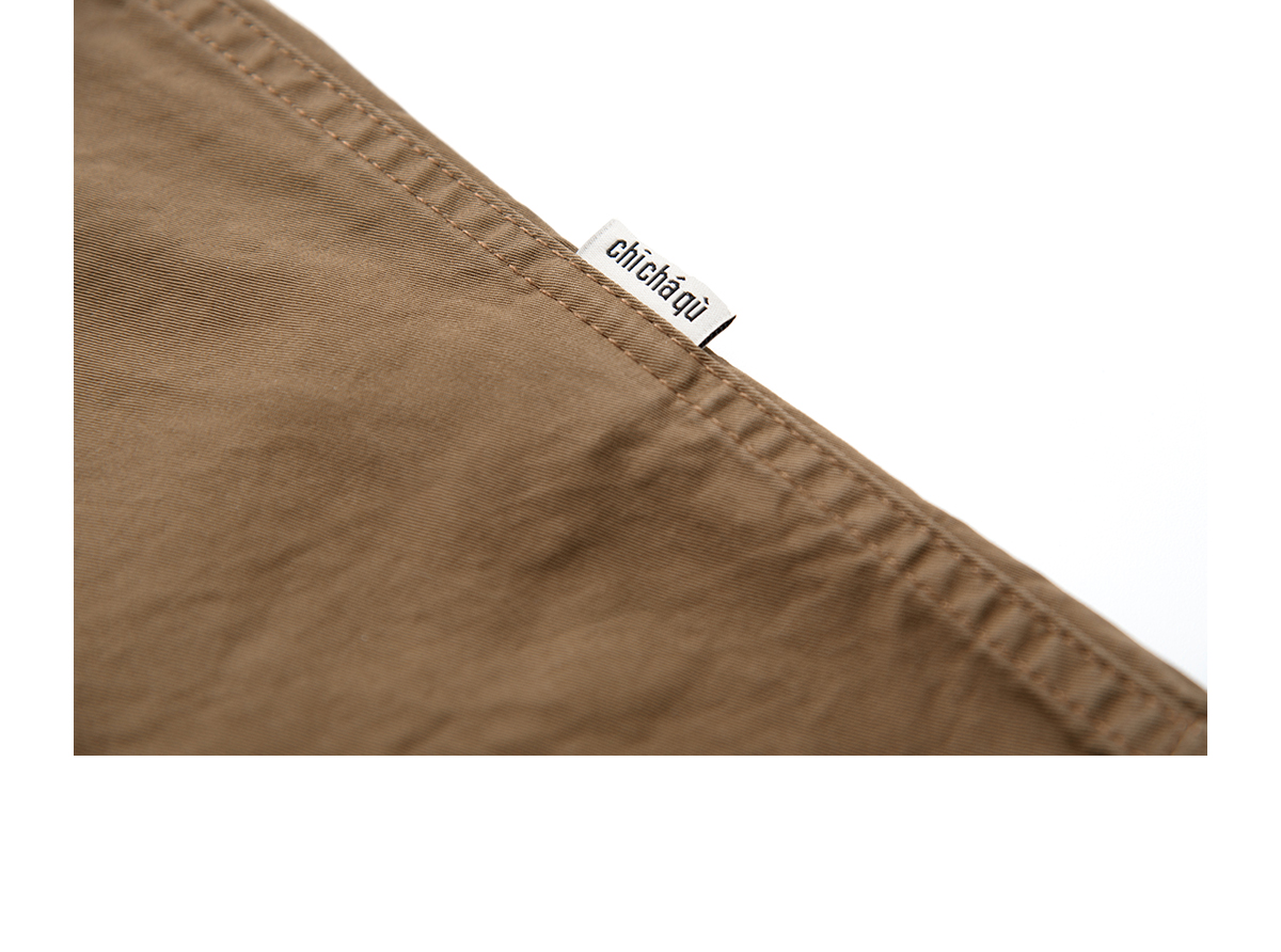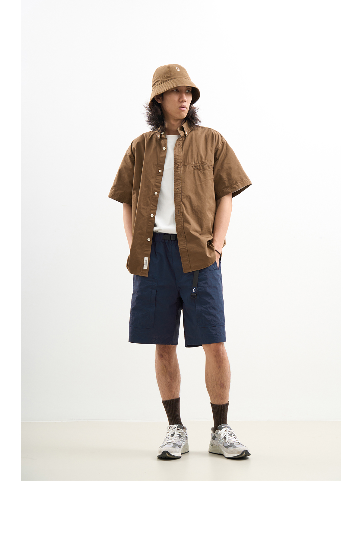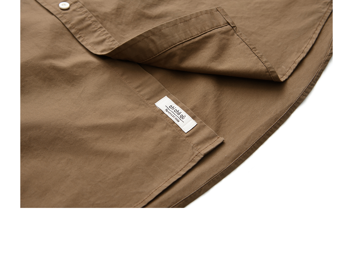 吃茶去chichaqu全棉斜纹口袋短袖衬衫复古经典休闲百搭