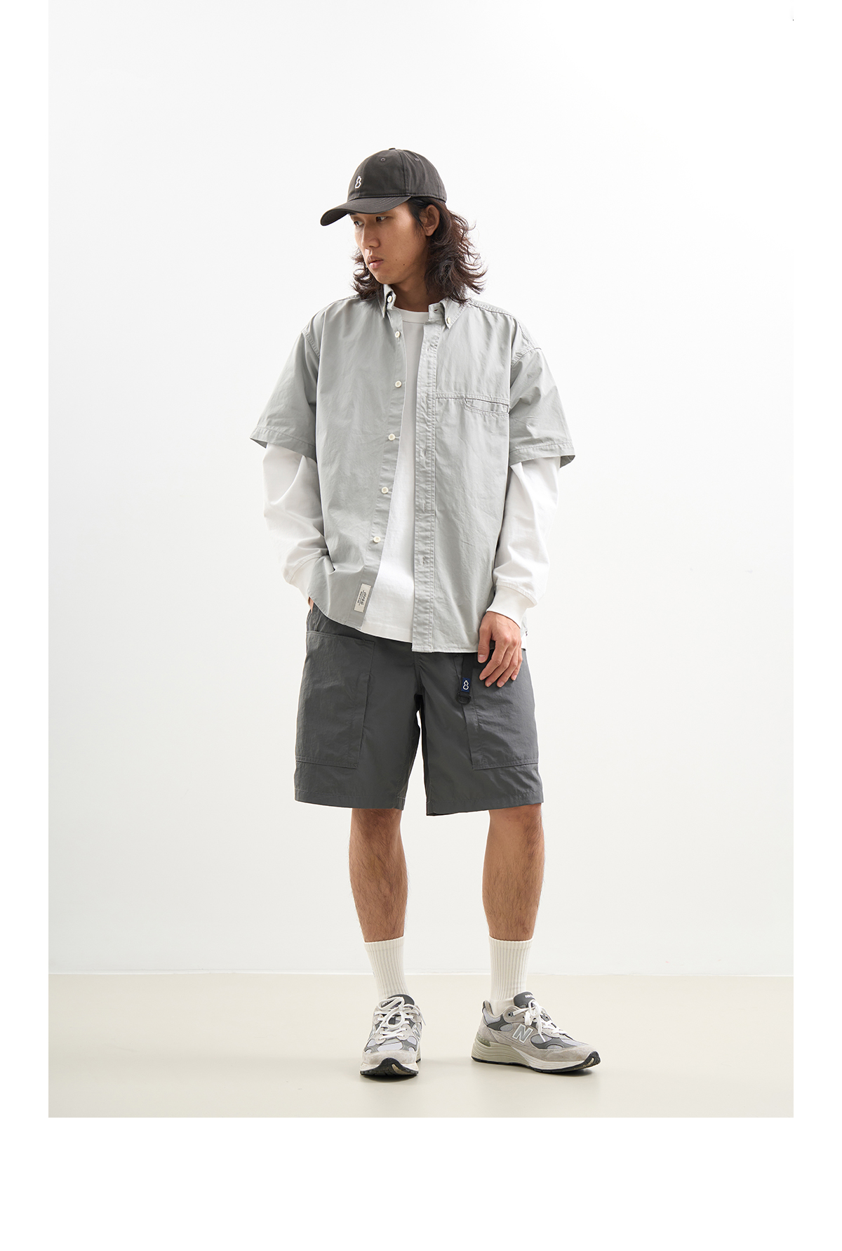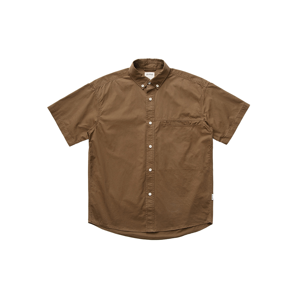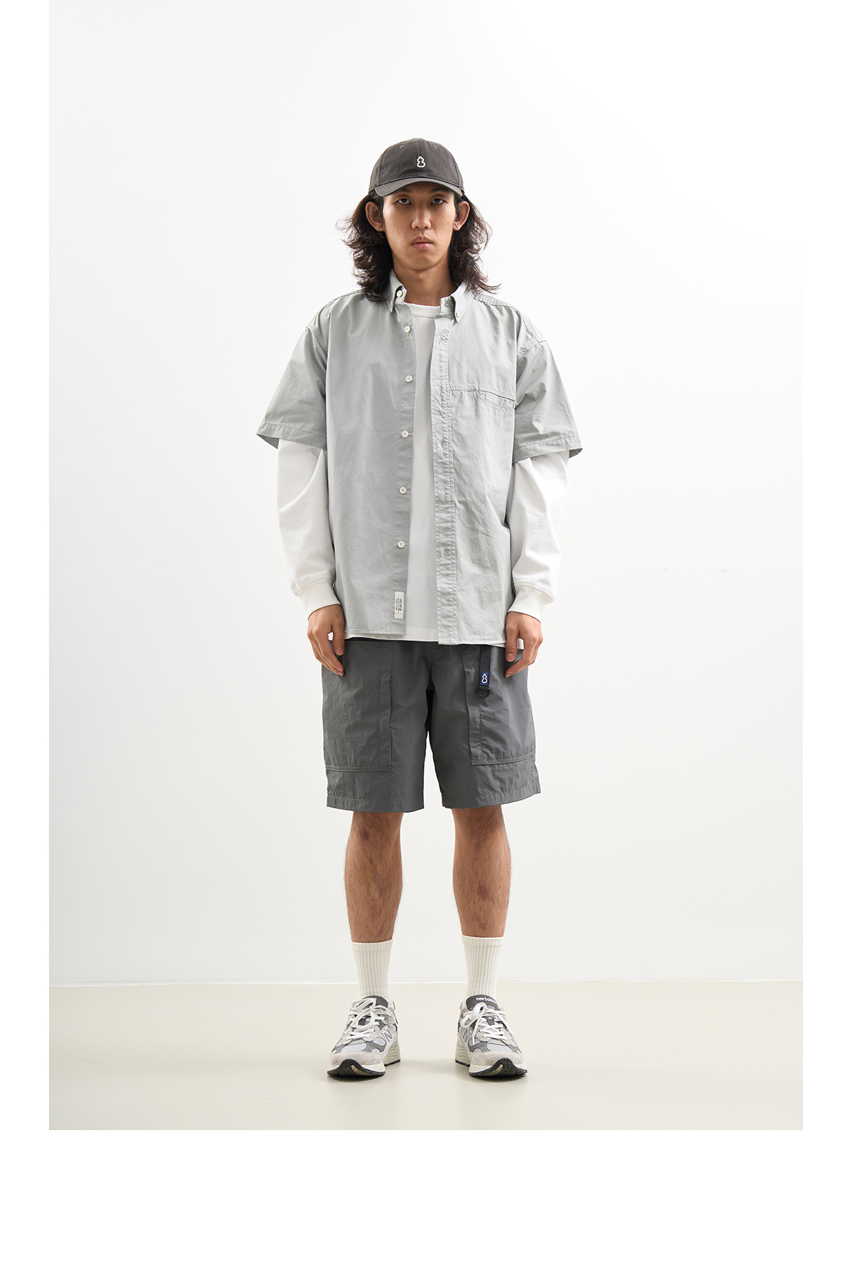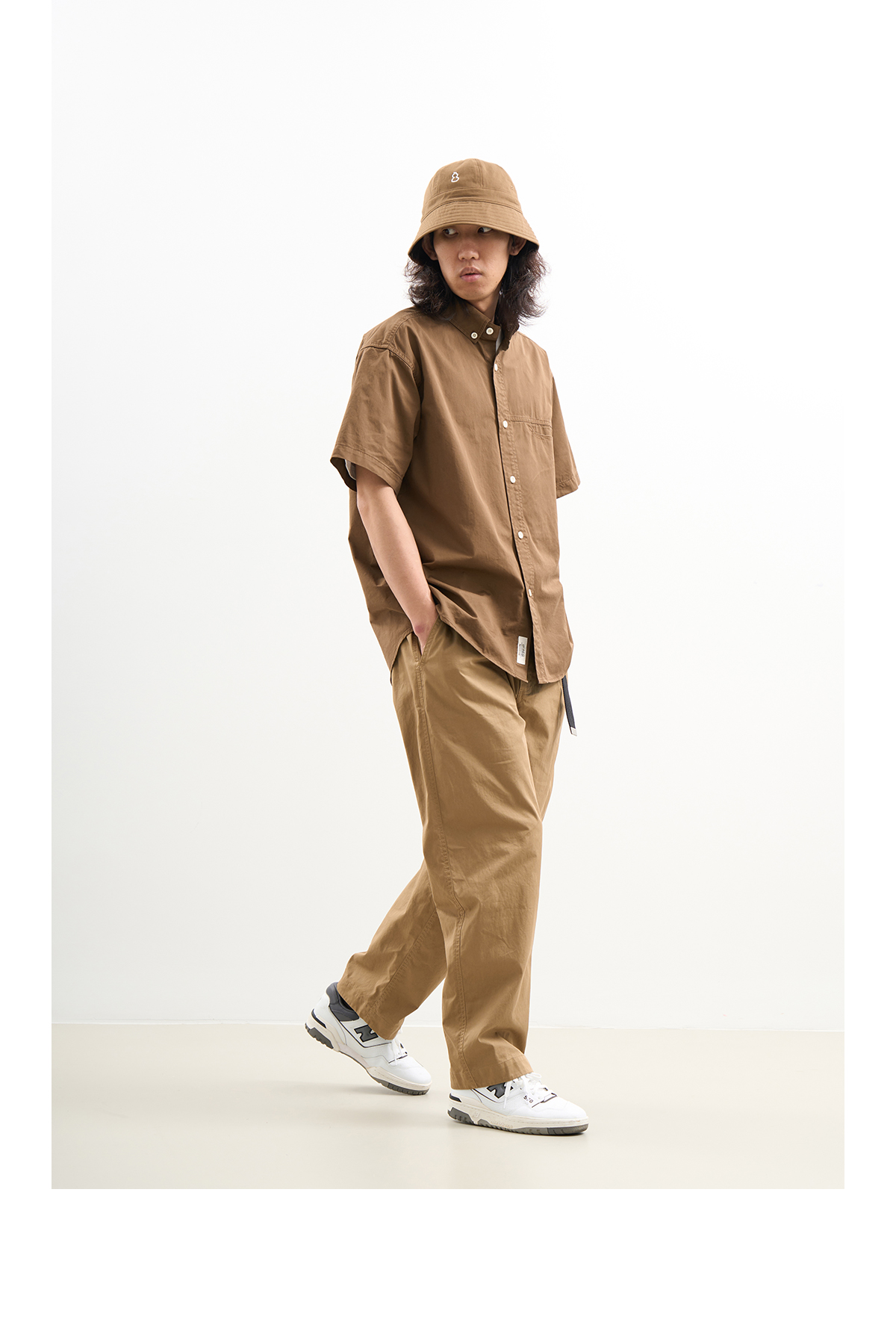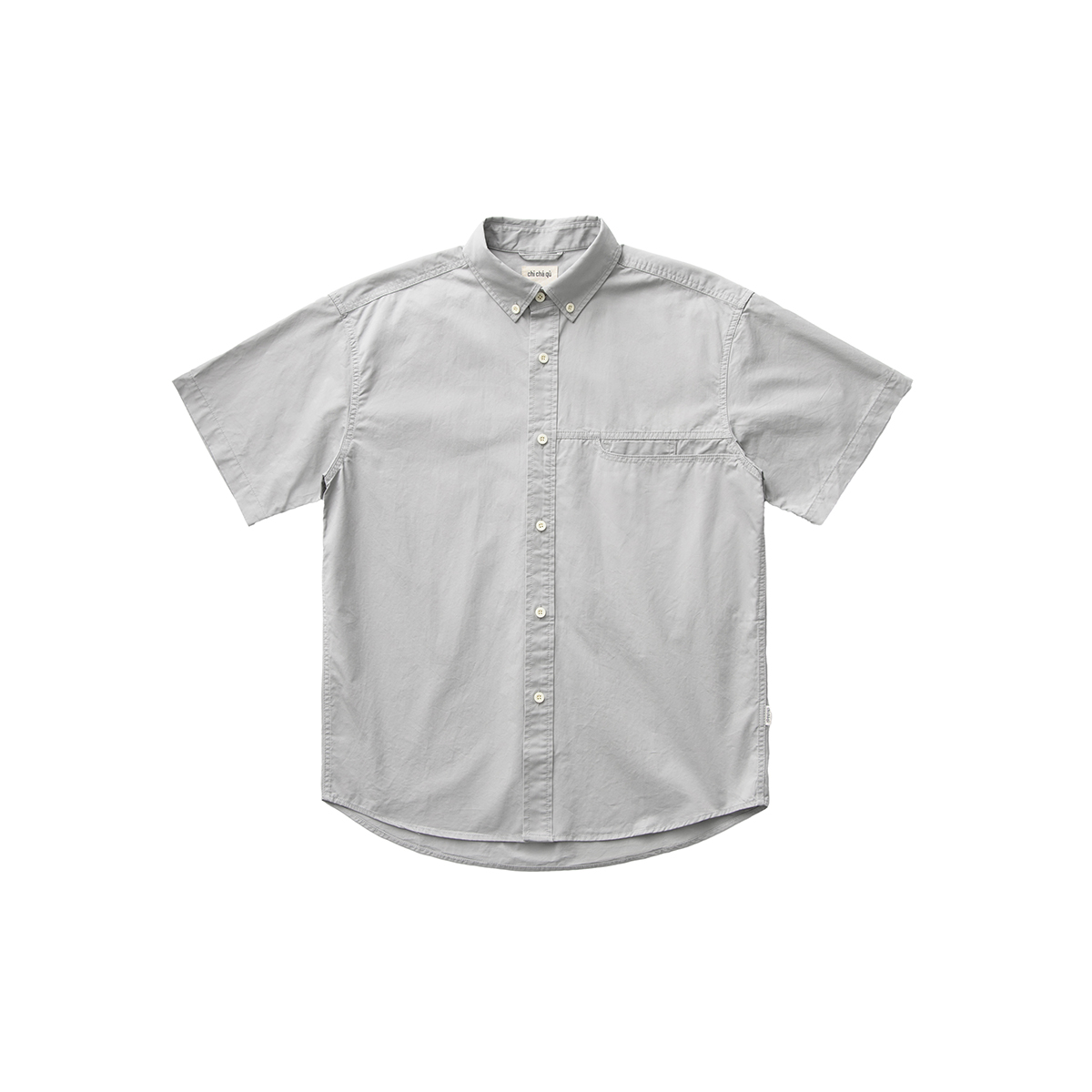 吃茶去chichaqu全棉斜纹口袋短袖衬衫复古经典休闲百搭