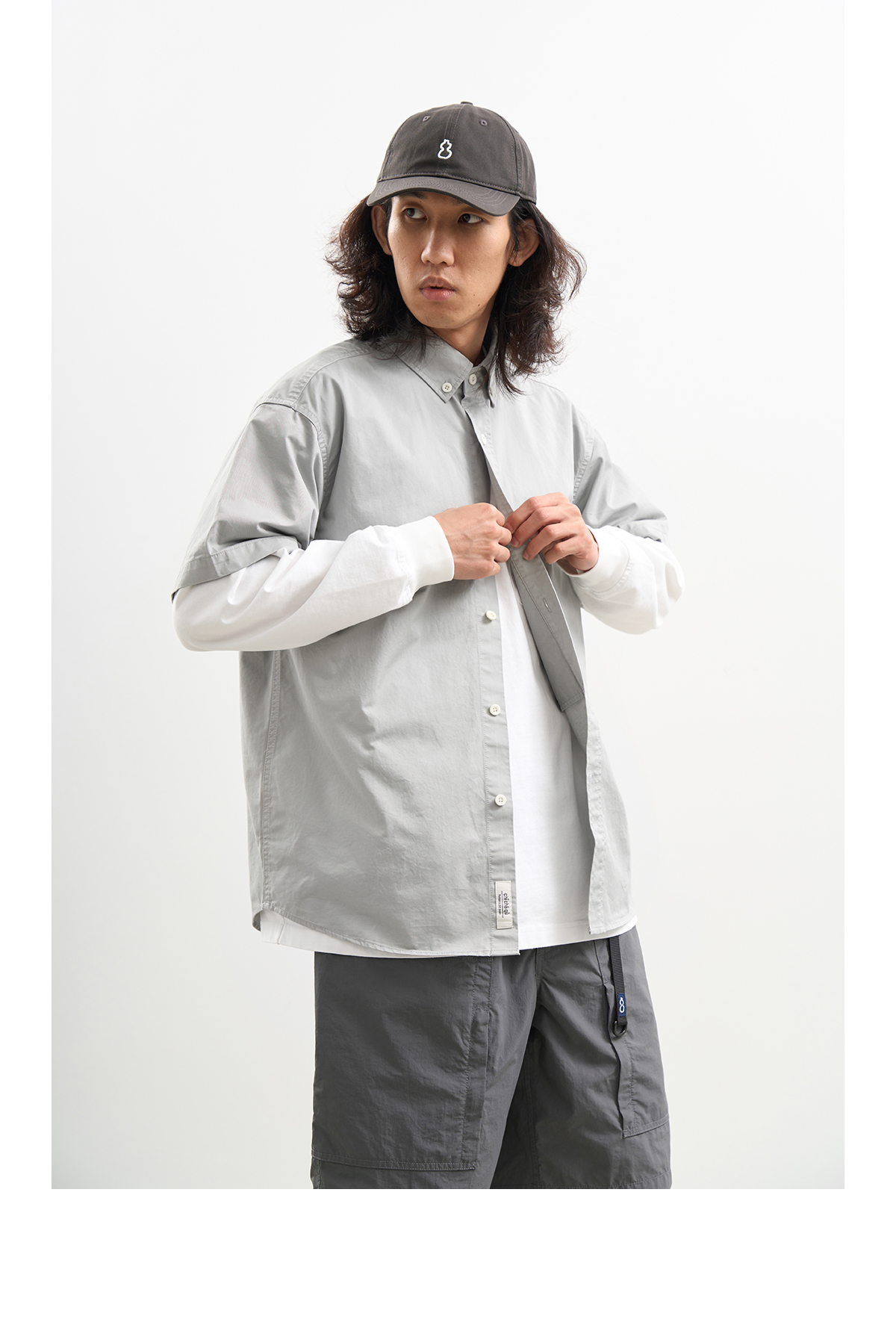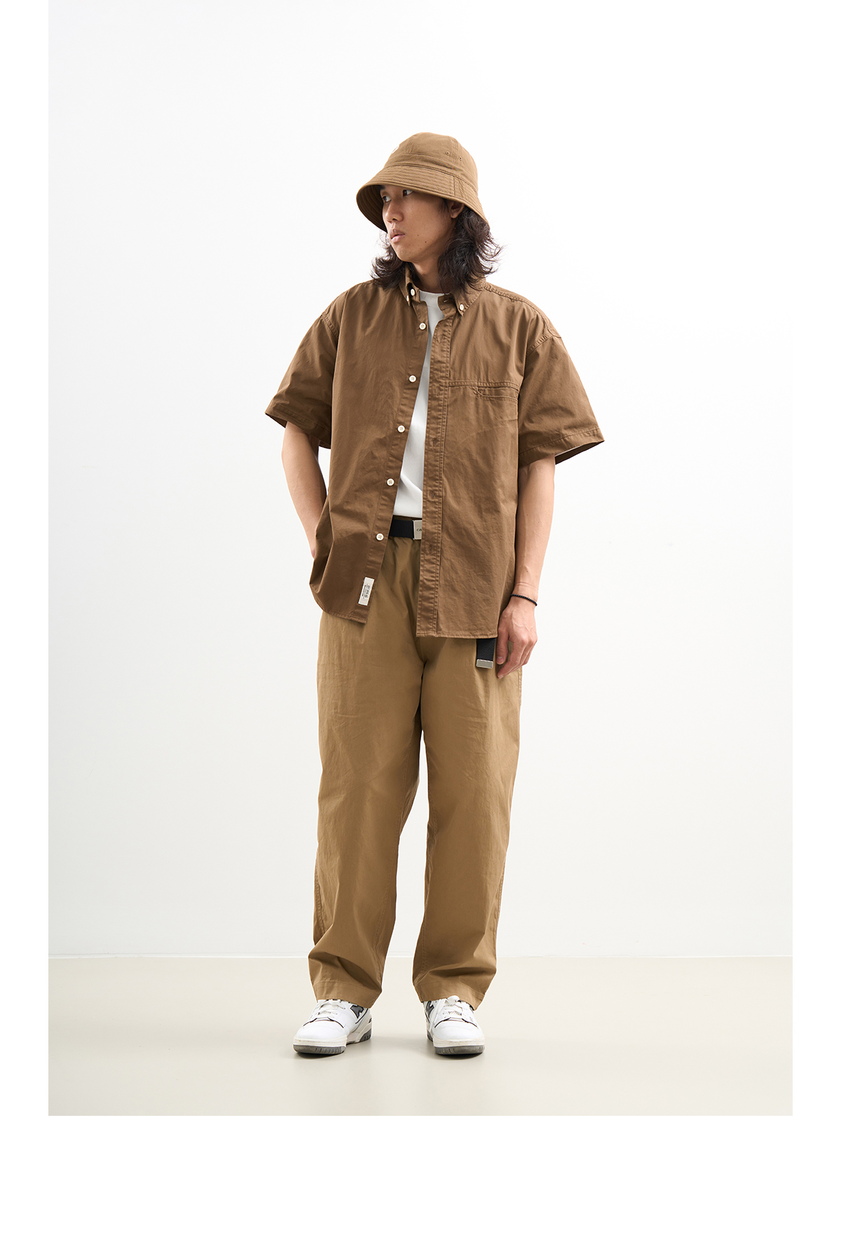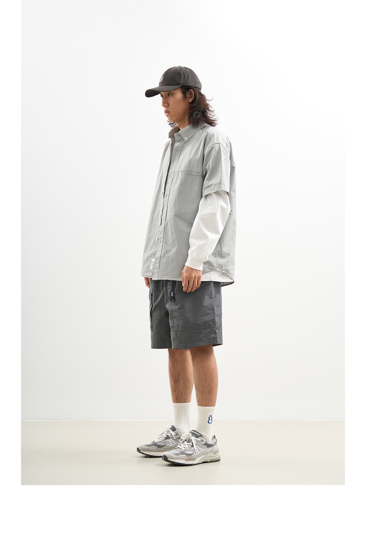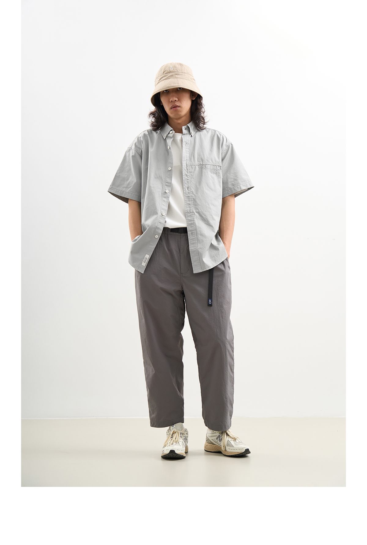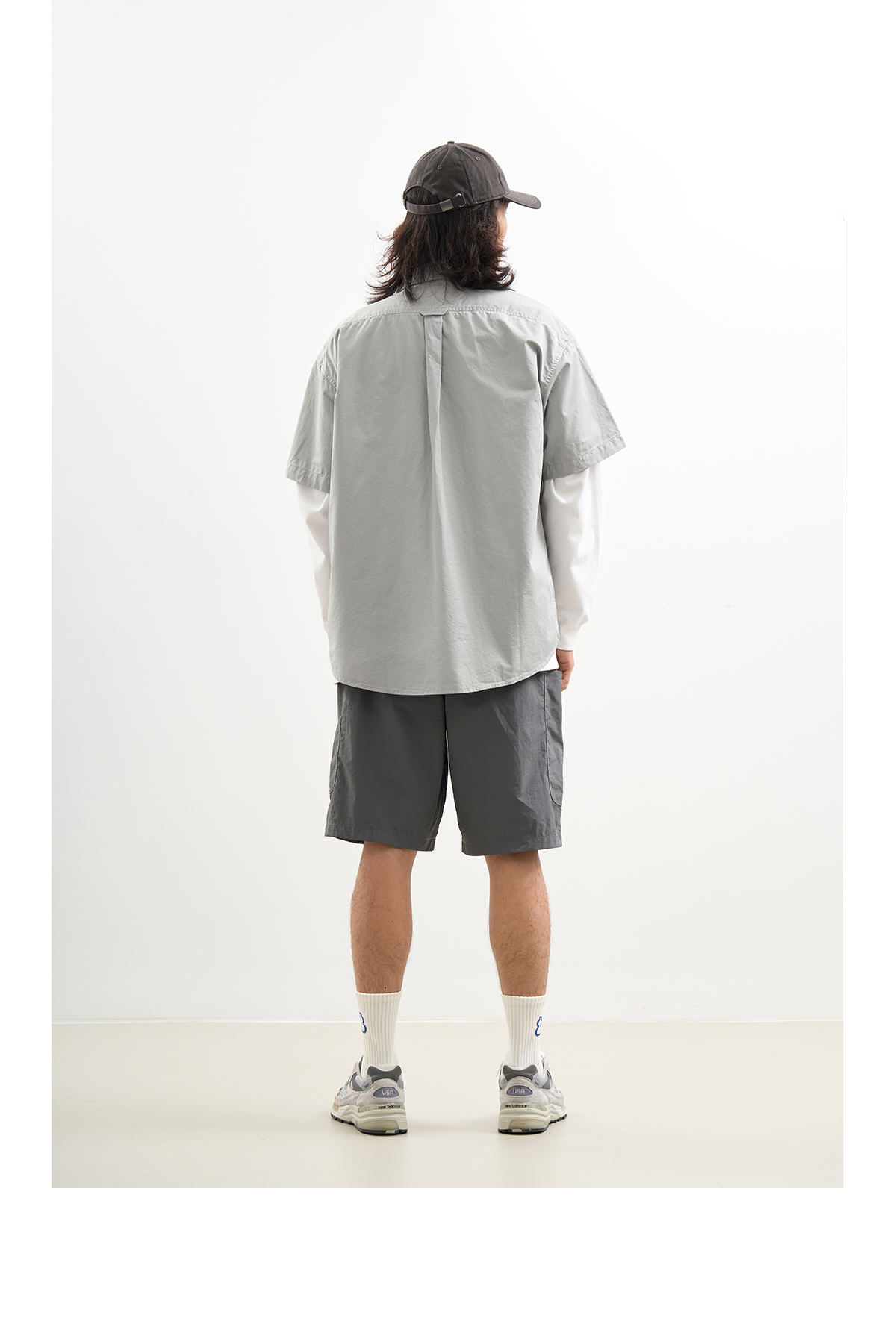 吃茶去chichaqu全棉斜纹口袋短袖衬衫复古经典休闲百搭