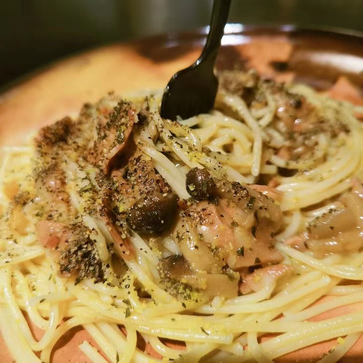 奶油培根配白葡萄酒意面,我也很喜欢,蘑菇鲜嫩,奶油香浓,还有上等白葡萄酒醇厚的香气,很适合搭配酒品,在家也能吃出高级感。