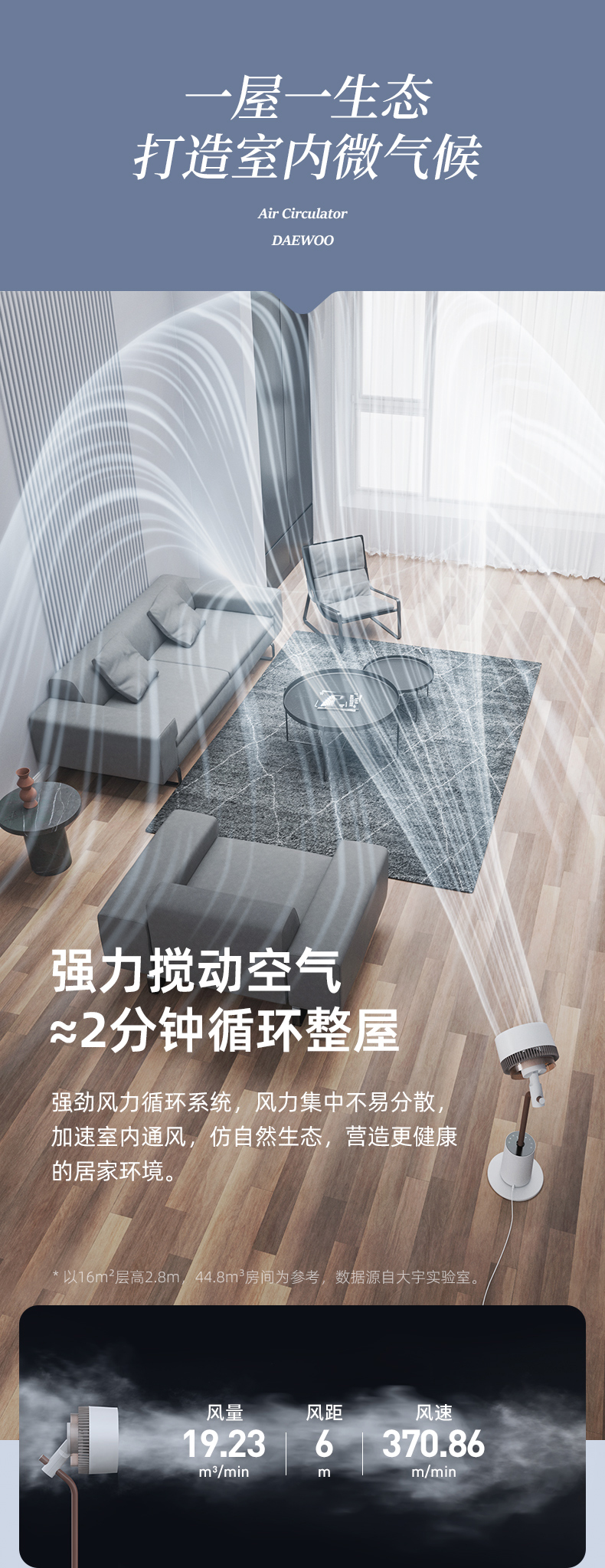 [屁侠推荐.pippa]DAEWOO/大宇 ECO智能空气循环扇 落地扇台灯 家用台式 智能遥控摇头对流涡轮电风扇F30
