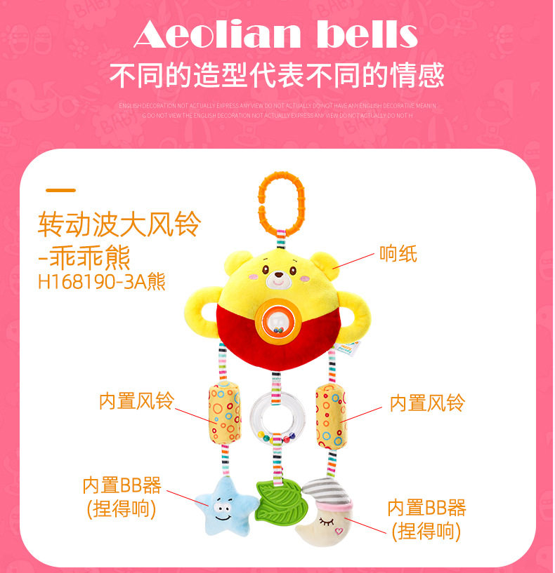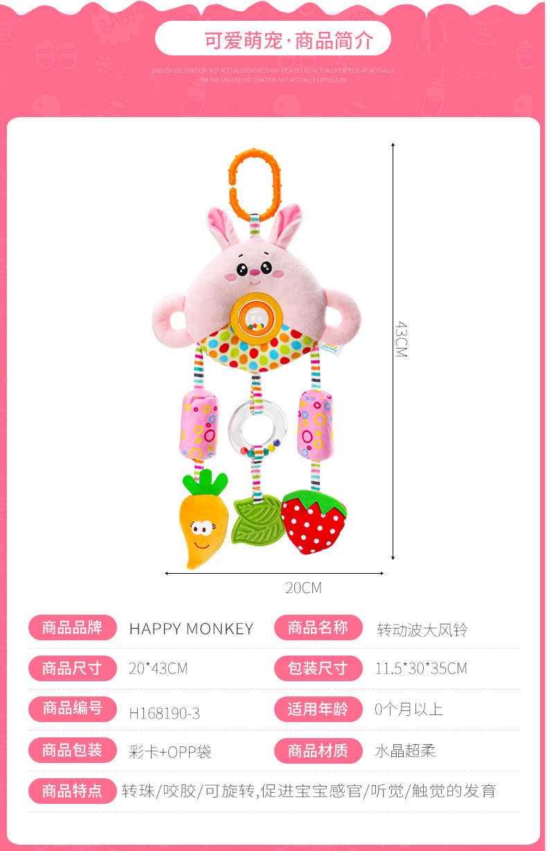 Happy monkey开心美猴王宝宝玩具床挂风铃摇铃婴幼儿推车安抚玩具