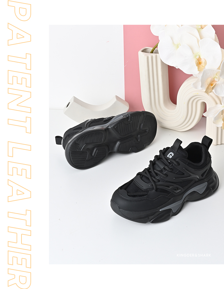 经典鲨2024年秋季新款韩版黑色网面透气舒适时尚老爹鞋休闲跑步鞋KF03-D33051