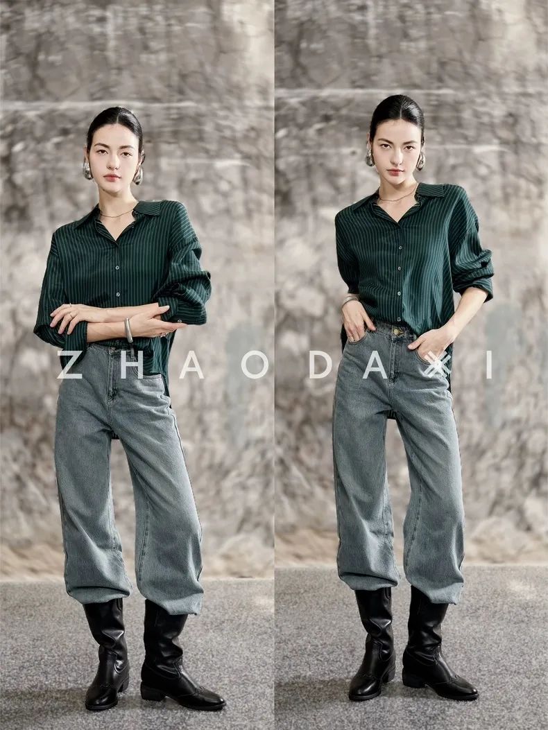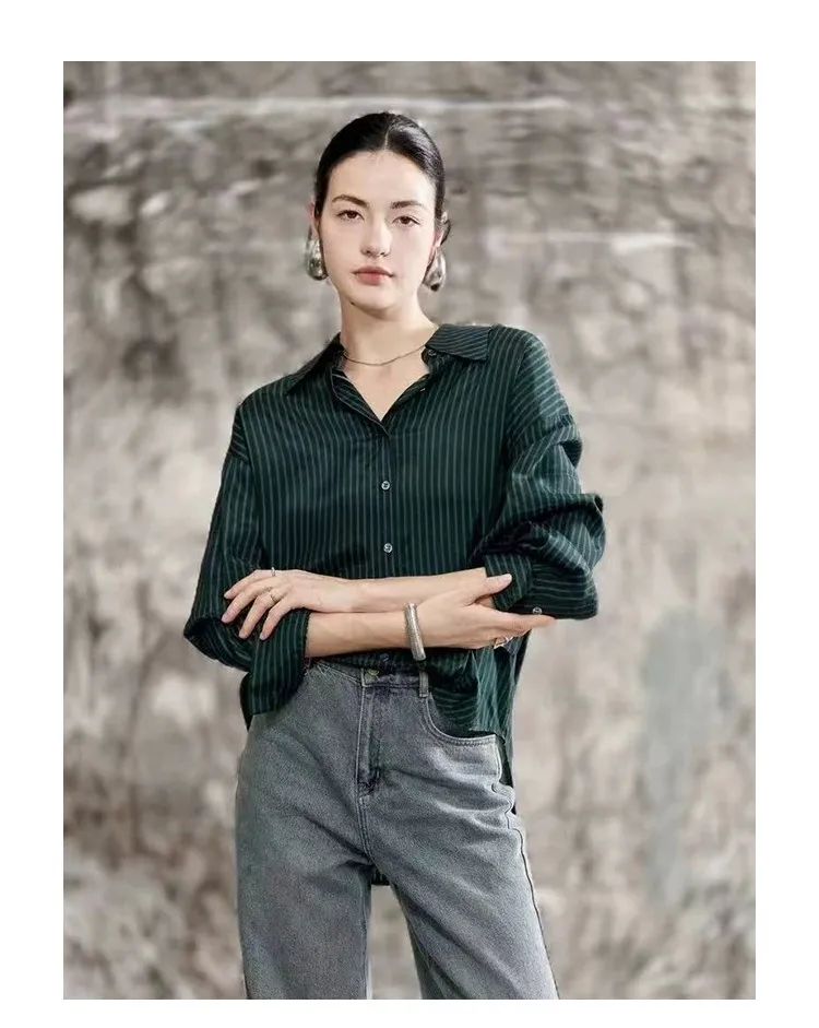 图案是墨绿色条纹,整体大方休闲,经典百搭