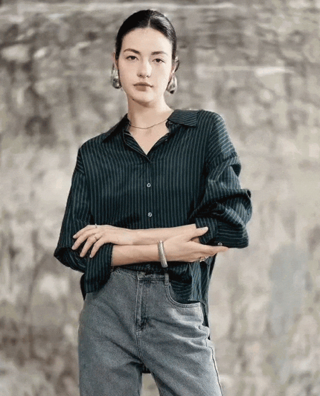 穿着时随意解开领口两粒扣子又有一种法式随性感