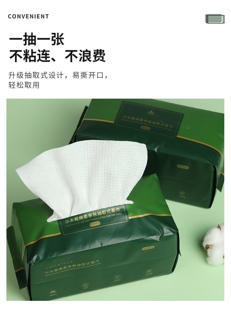 70片超大包装,不起毛不掉絮,触感温柔🍃不刺激 ,满足你对洁面巾的所有需求哦!