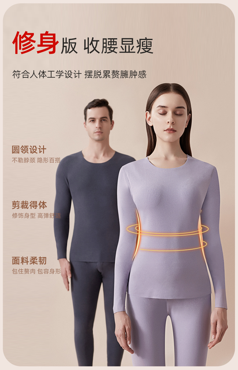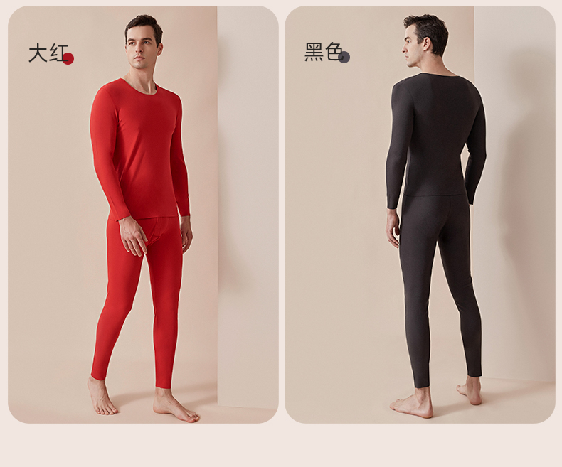 雅黛丽秋衣秋裤套装女本命年红色保暖内衣套装男秋冬季美体保暖衣