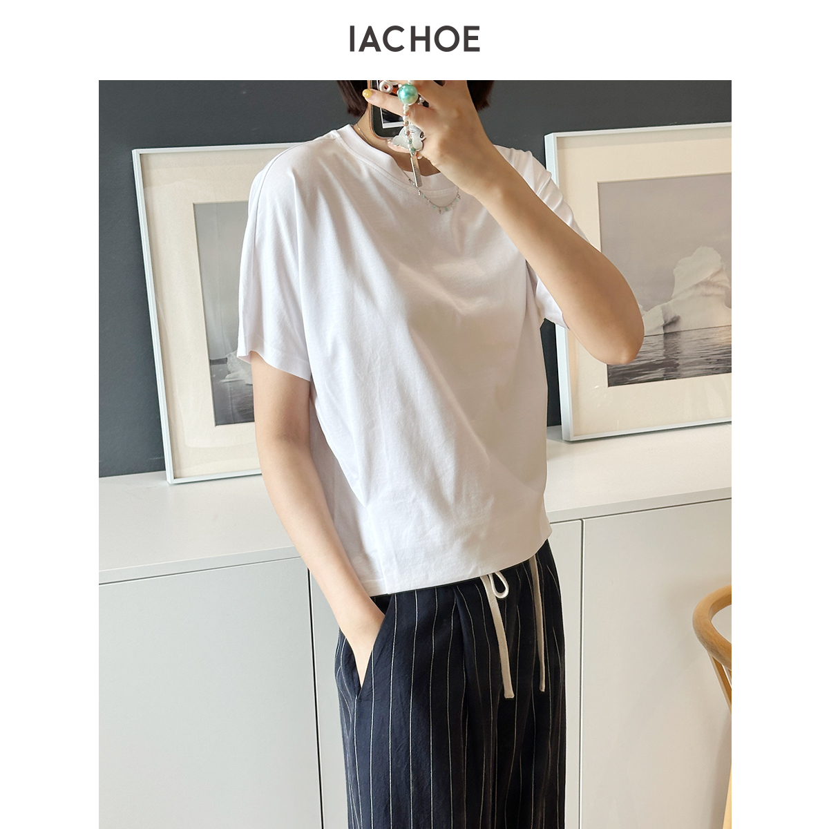 棉仓3631501025-IACHOE蝙蝠袖设计短袖T恤