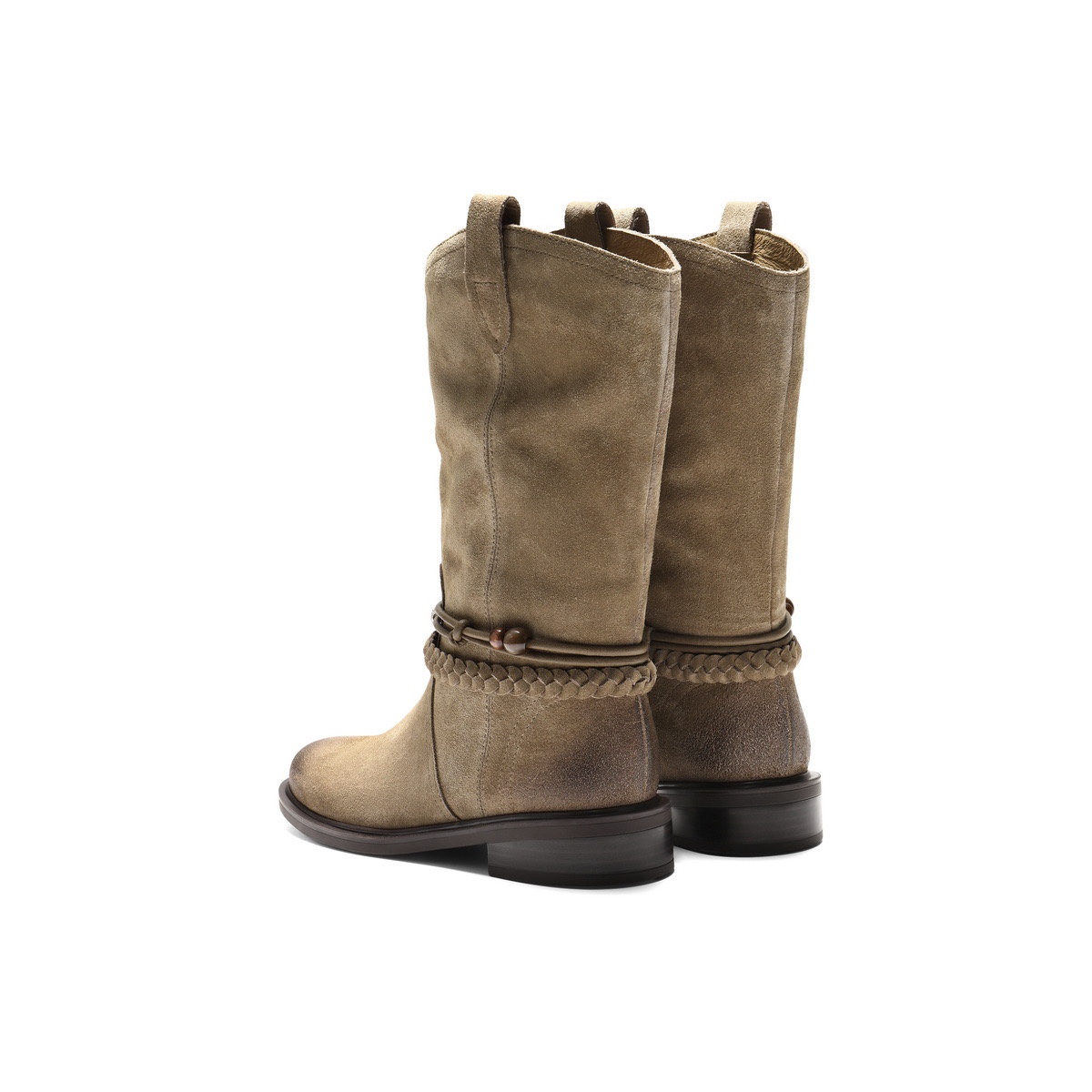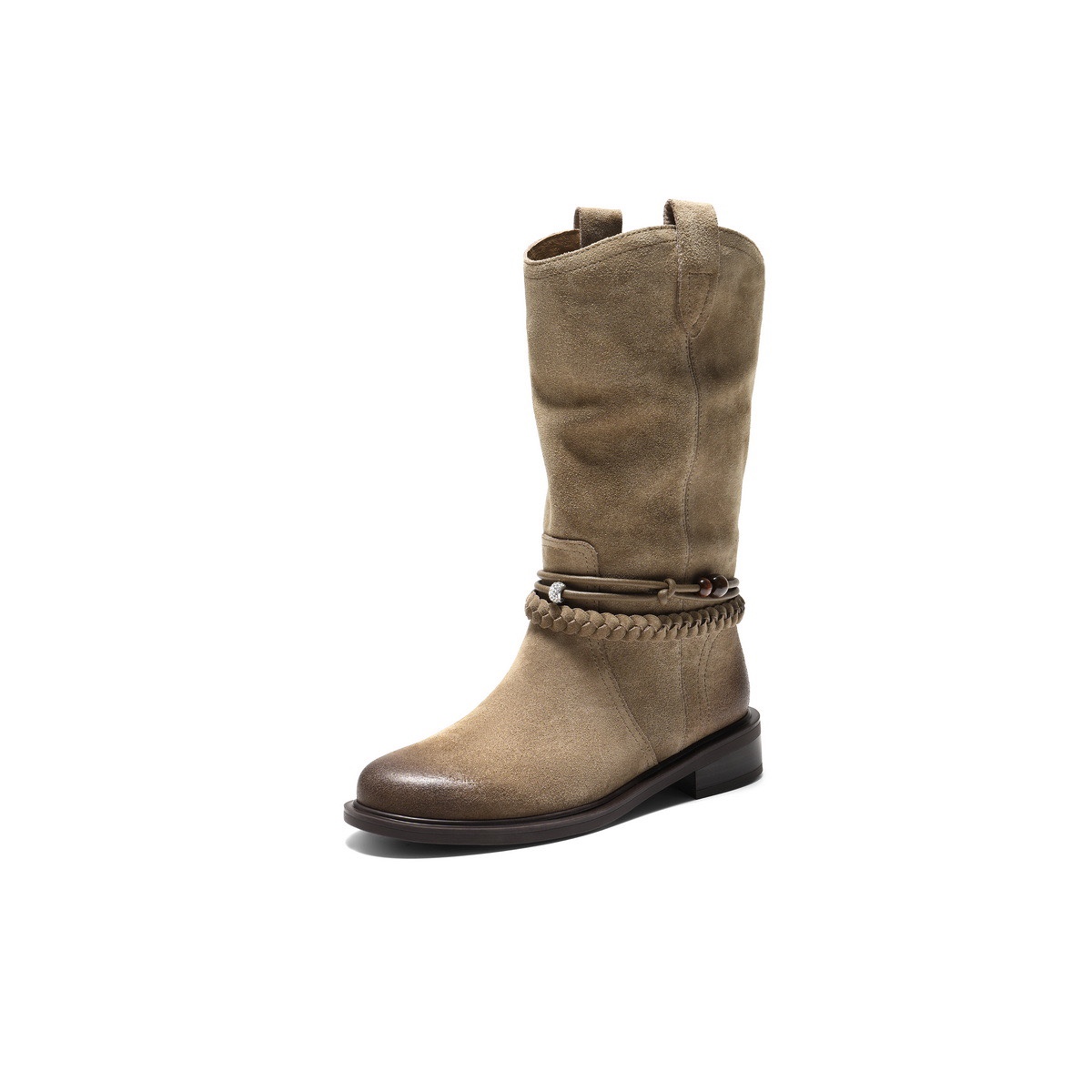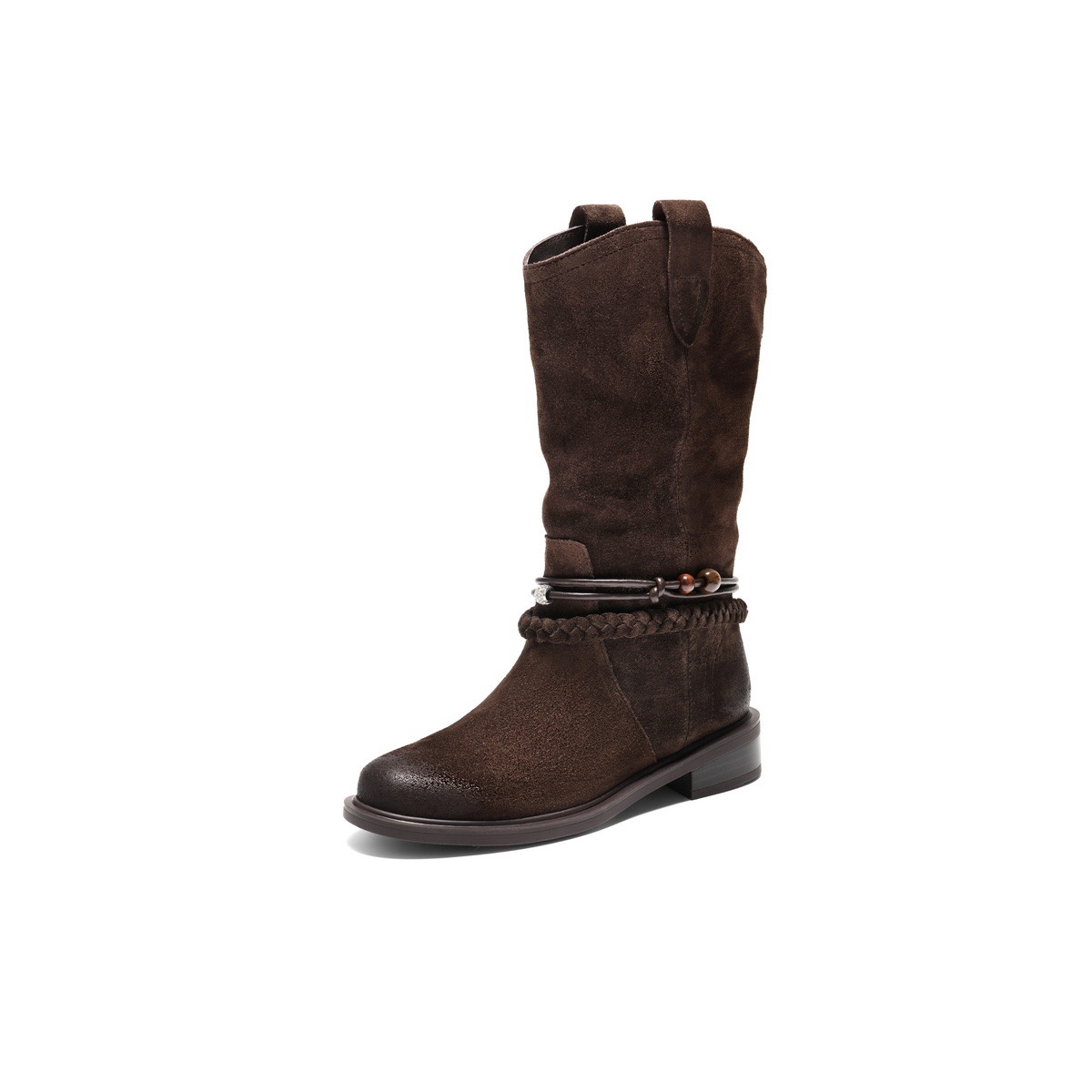 BF楼百丽复古显瘦时装靴女鞋子冬季款中筒显瘦牛仔西部靴3QFC6DZ5