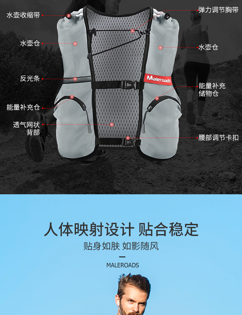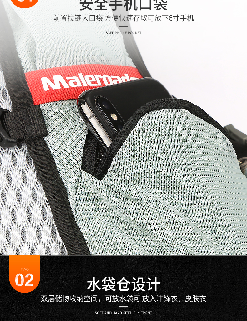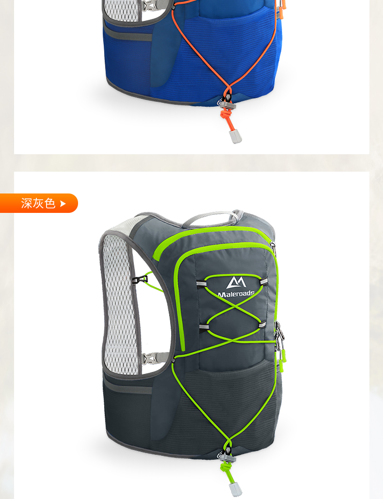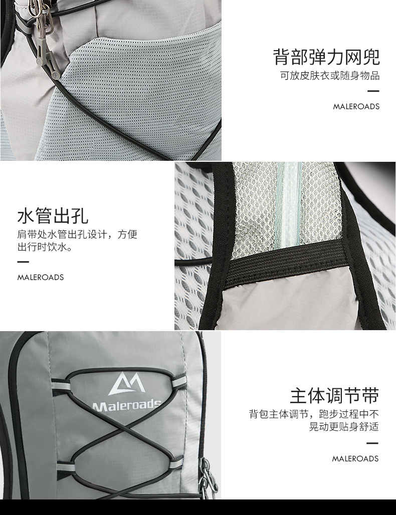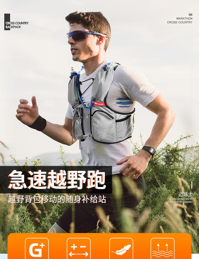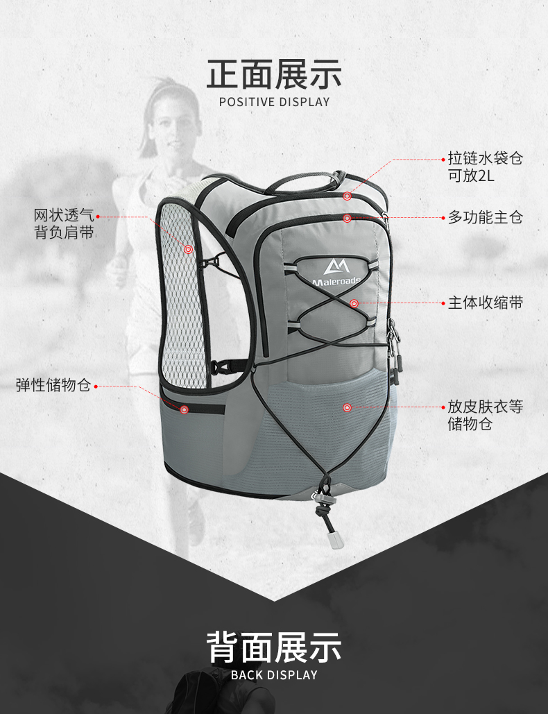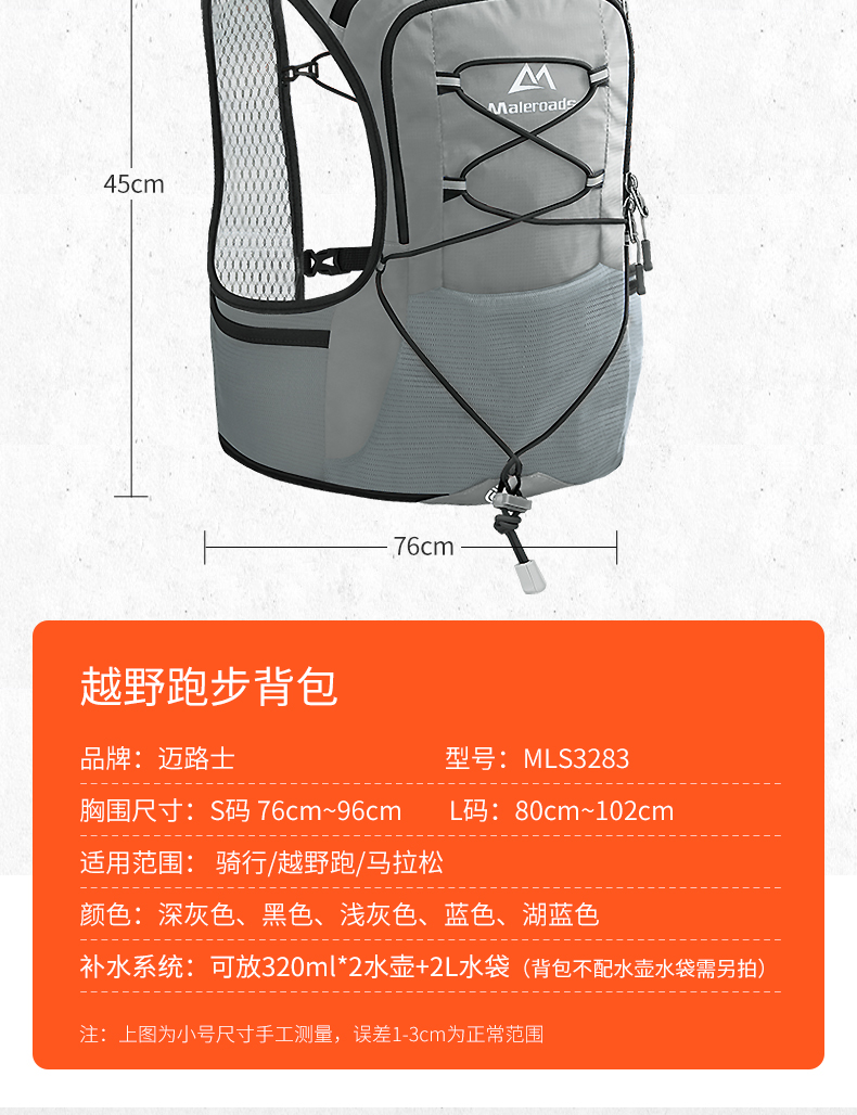 迈路士越野跑步双肩背包男透气户外徒步多功能运动水袋包女防水骑行包8L