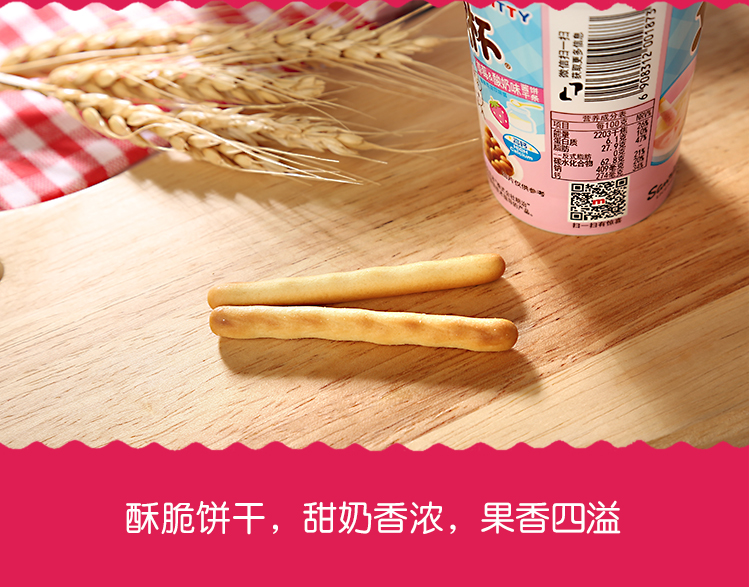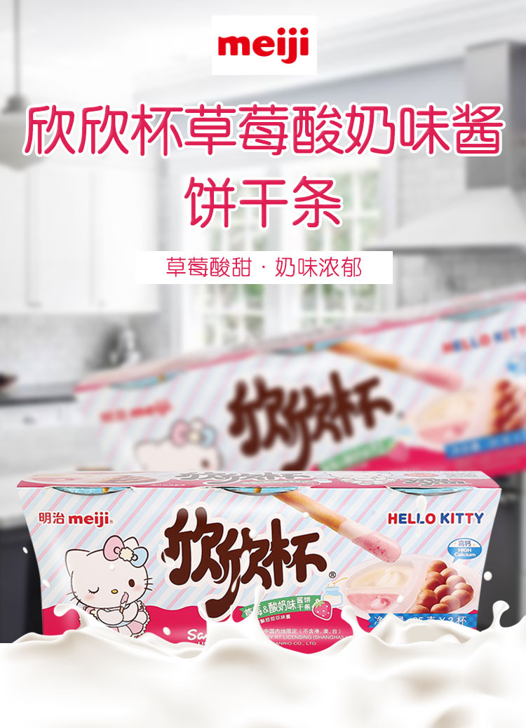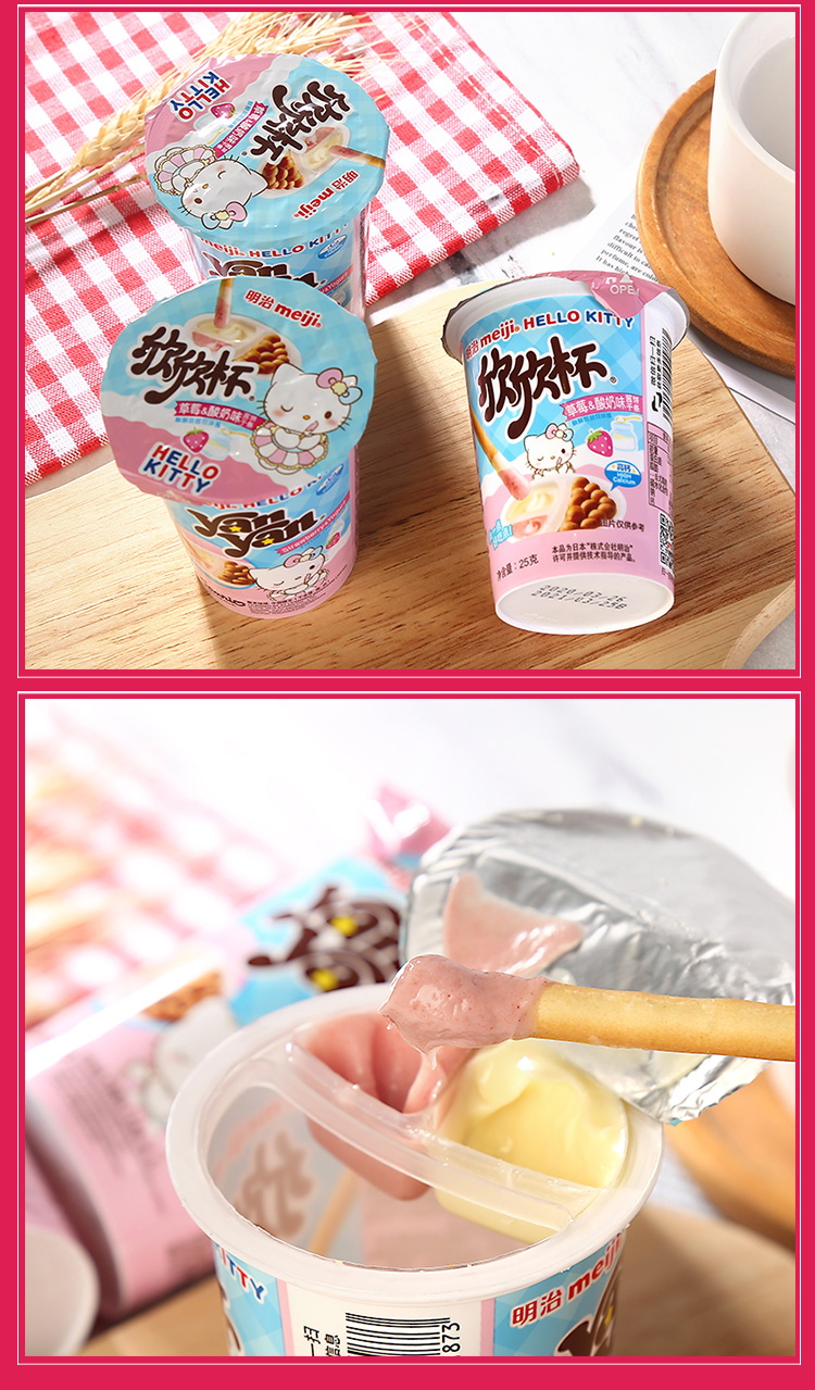 明治欣欣杯草莓酸奶味酱饼干条25g/杯