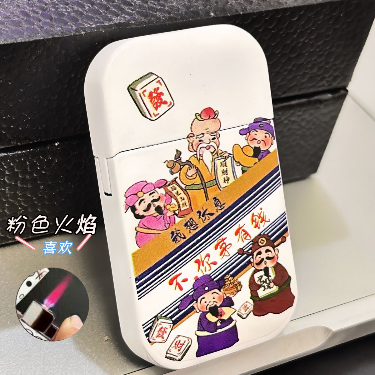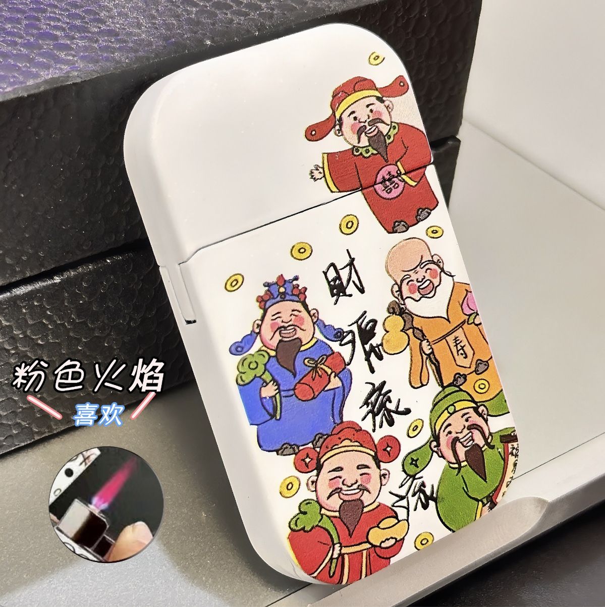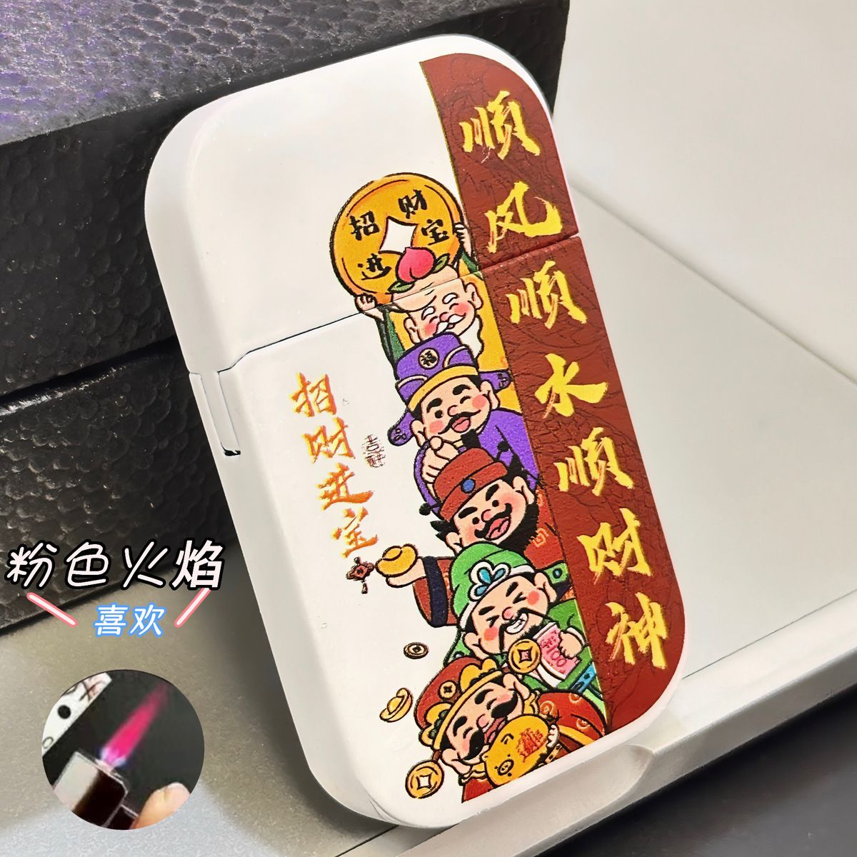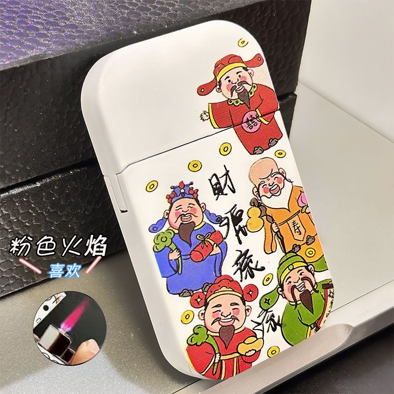 财神爷发财卡通充气防风金属打火机粉色火焰高颜值送男友