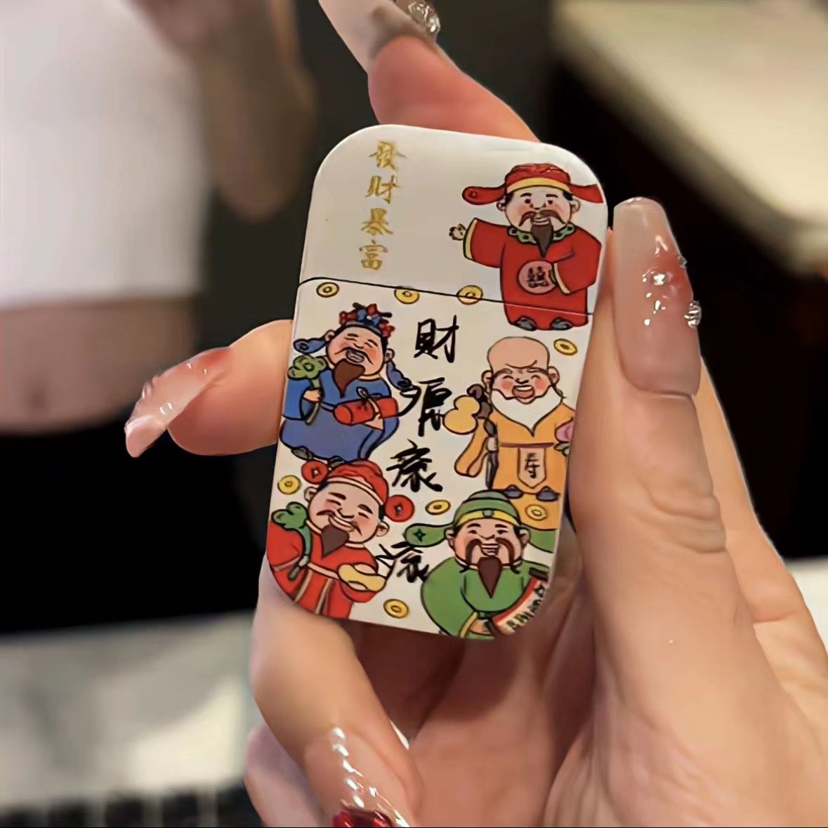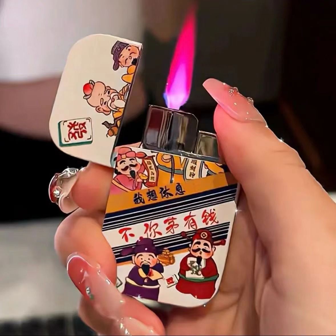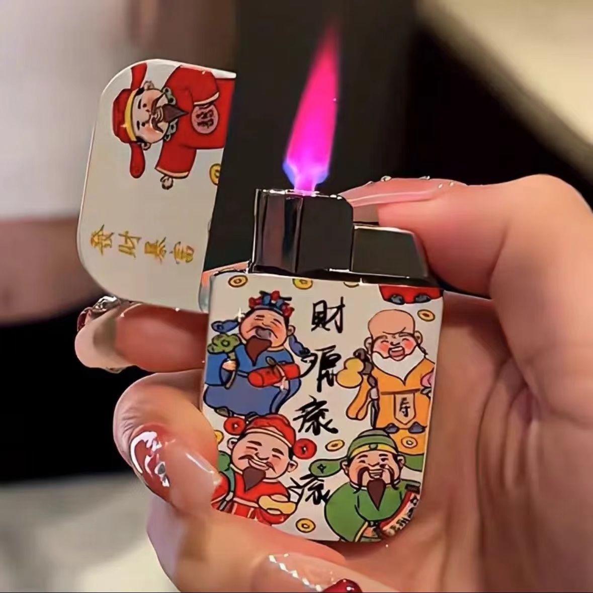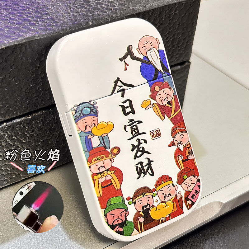 财神爷发财卡通充气防风金属打火机粉色火焰高颜值送男友