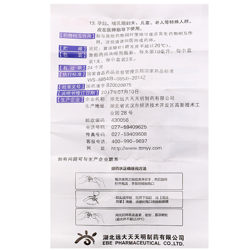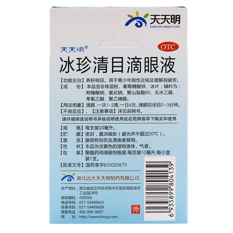 天天明冰珍清目滴眼液10ml缓解视疲劳假性近视 养肝明目眼药水
