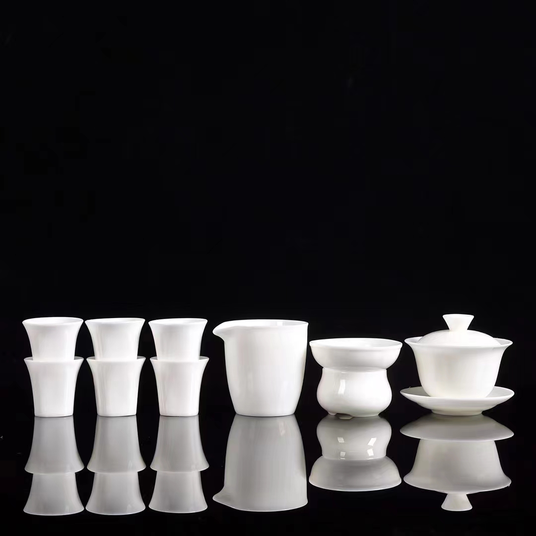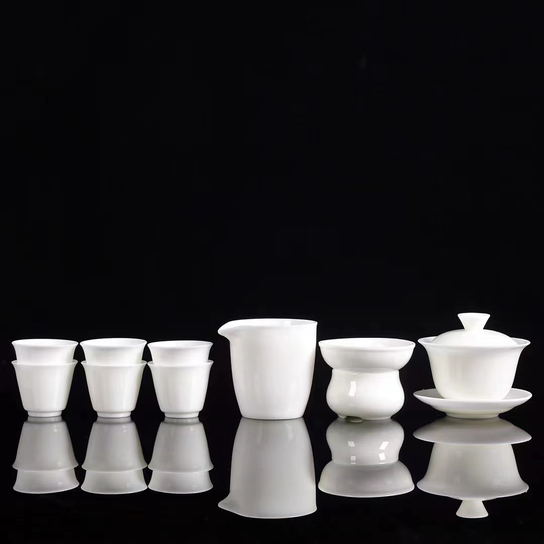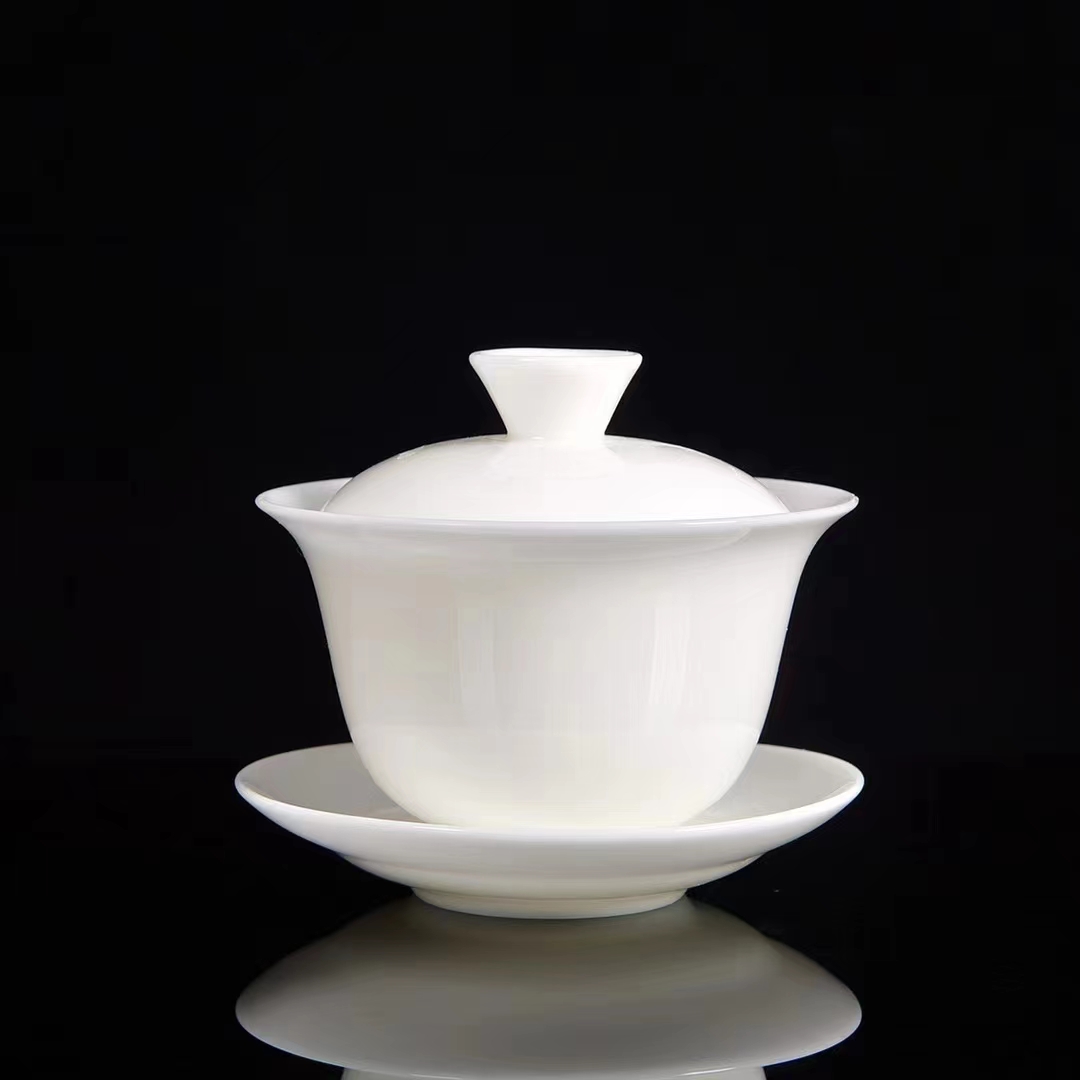 永利汇羊脂玉纯白大盖碗茶具套装家用办公礼品盒送人手提式