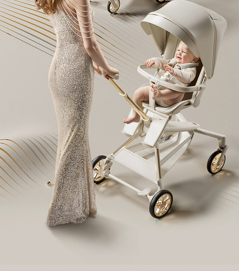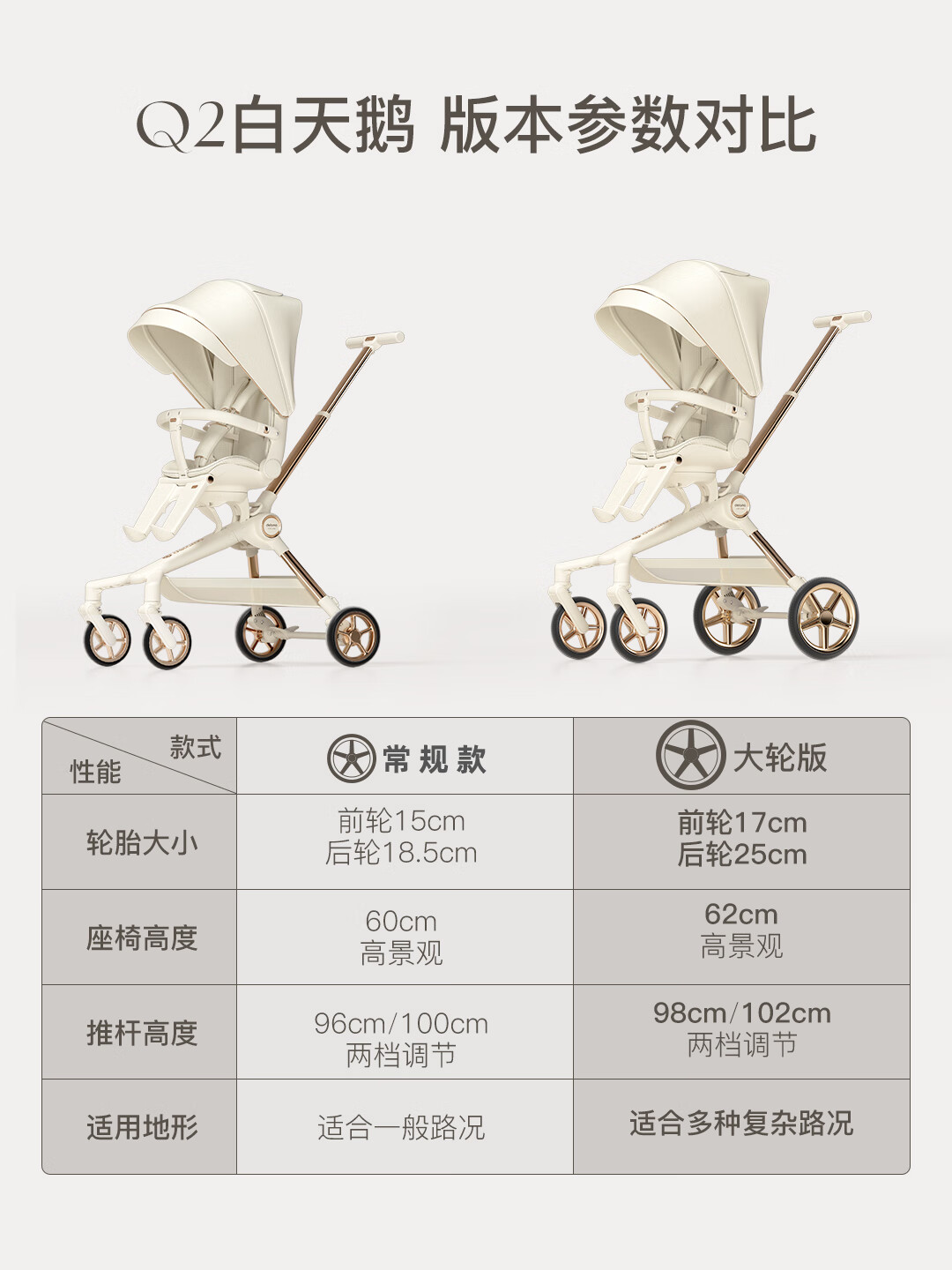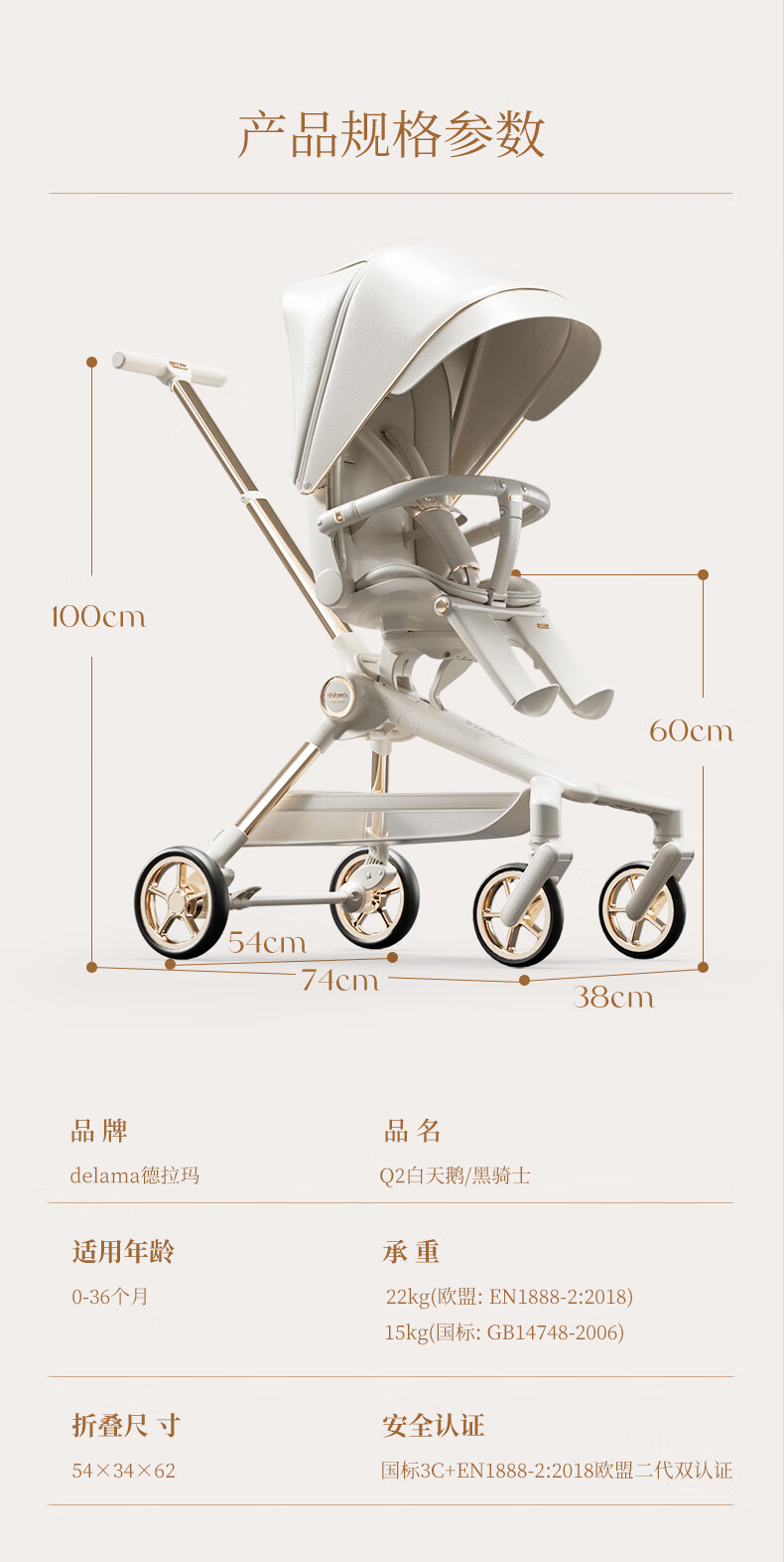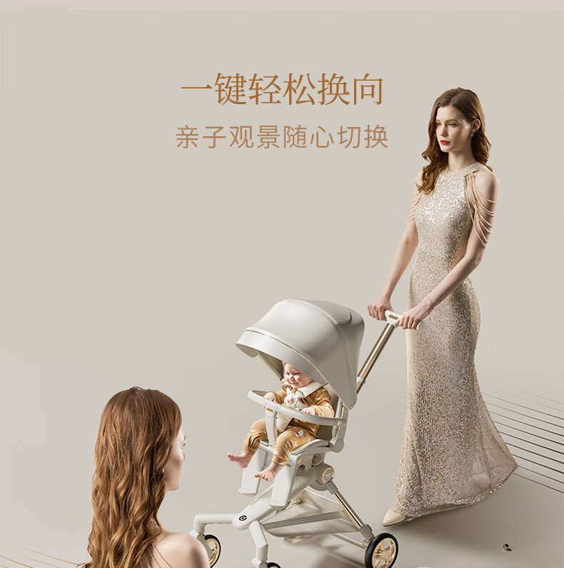 【5F】 英氏 德拉玛(DELAMA)Q2遛娃神器婴儿推车高景观婴儿车可坐可躺换向轻便折叠宝宝溜娃车 Q2美拉德PLUS(加大轮版)
