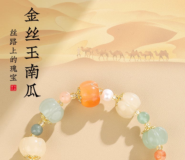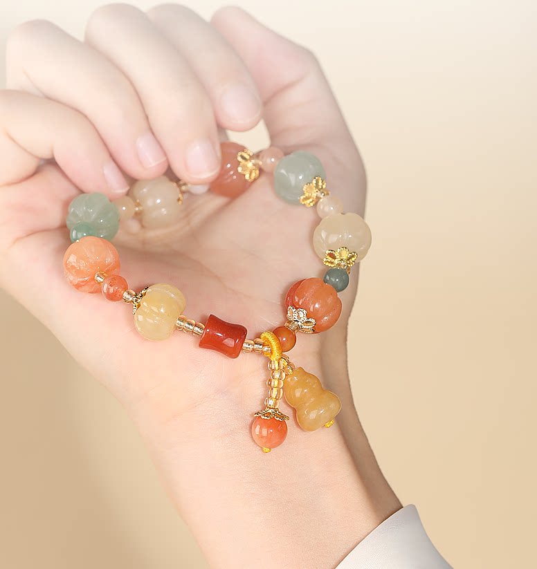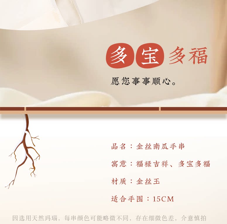 六鑫珠宝 金丝玉多宝南瓜手串 福禄吉祥