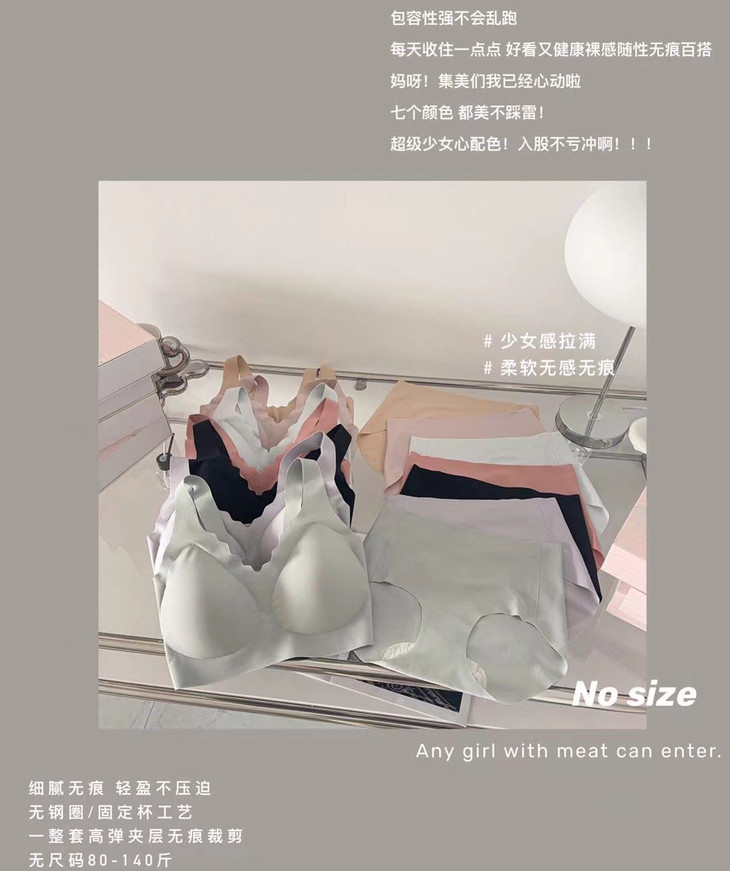 【娜娜同款 送无痕内裤】大粉盒盒装内衣套装女无尺码无痕聚拢背心式乳胶文胸