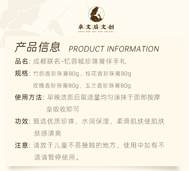 热卖中!【百年老品牌 非物质文化遗产】卓文后成都联名忆蓉城珍珠膏玫瑰 竹韵 桂花 玉兰保湿滋润清爽面霜套装