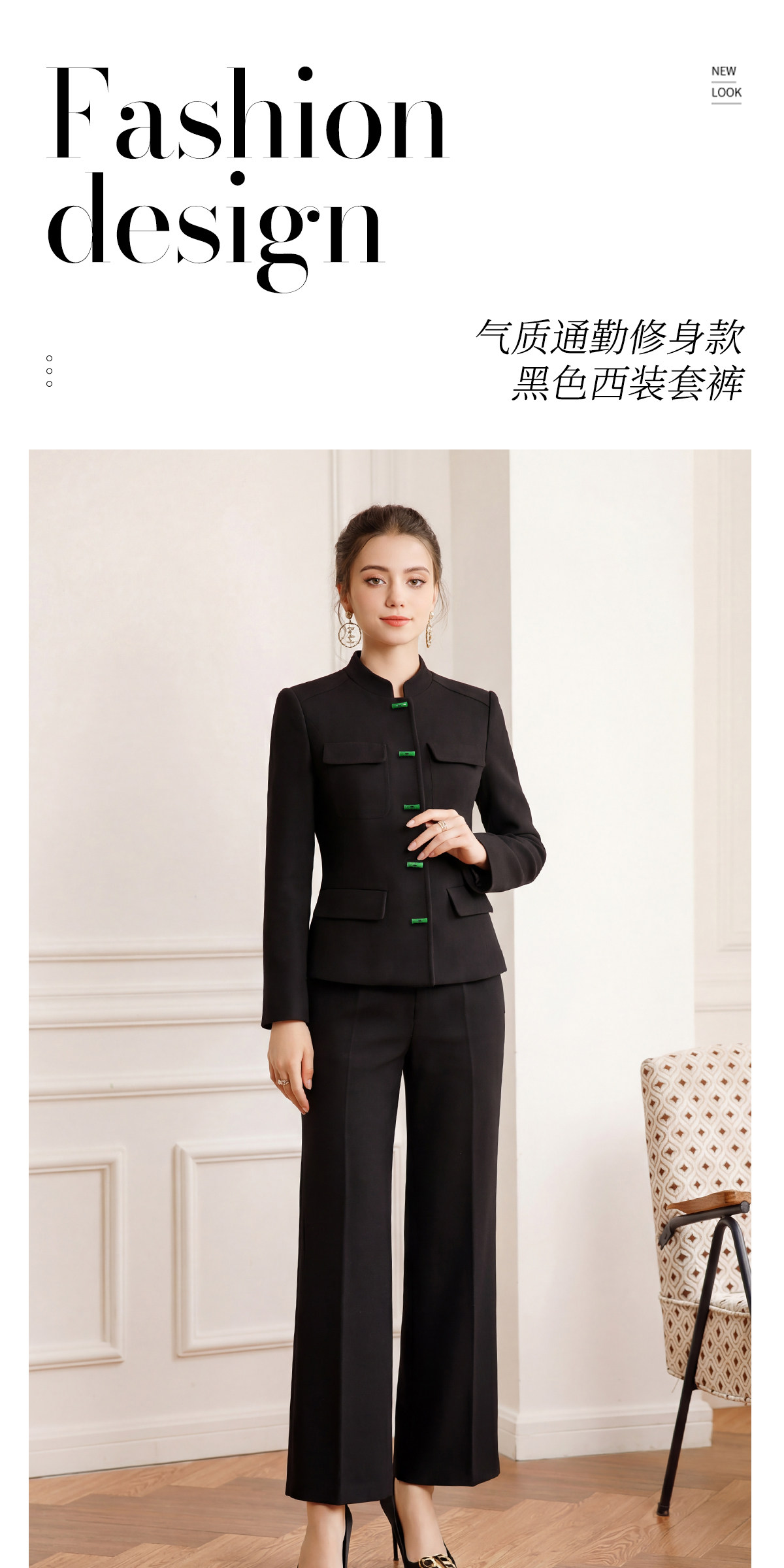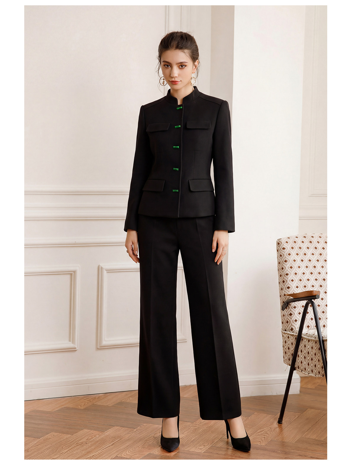 艾尚臣新中式高端西装套装女春秋气质公务员面试职业阔腿裤两件套