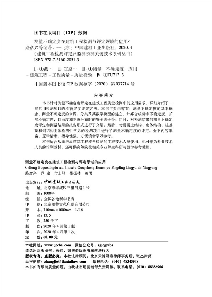 【正版现货】测量不确定度在建筑工程检测与评定领域的应用 路彦兴等著 建筑工程检测评定及监测预测关键技术系列丛书 中国建材工业出版社