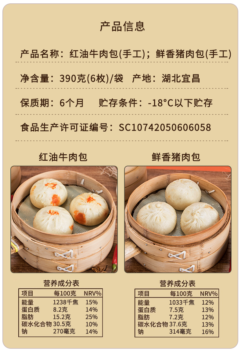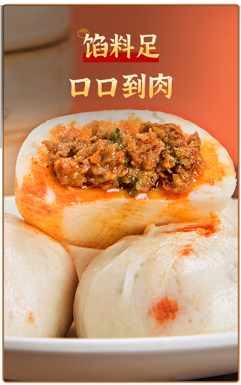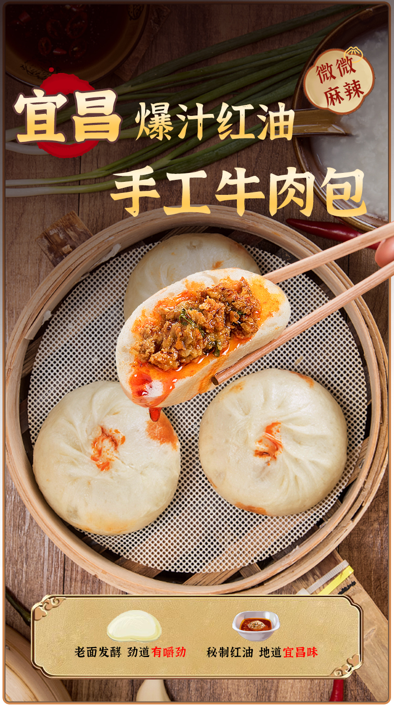 【宜昌助农馆】鲁老记 宜昌红油大包子手工爆汁牛肉包 390g/6个