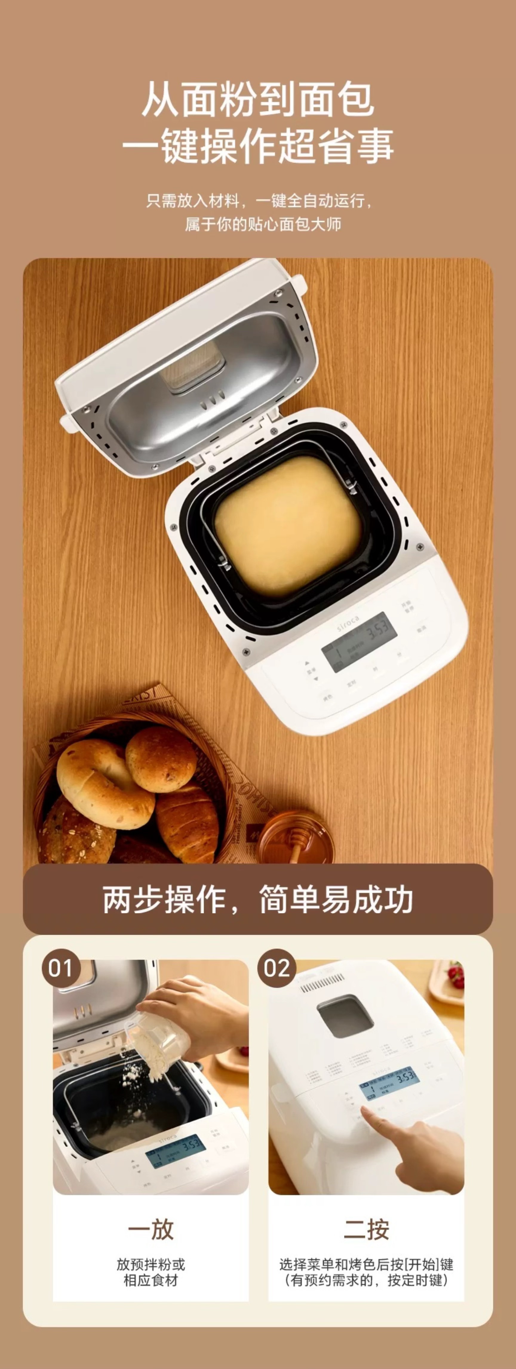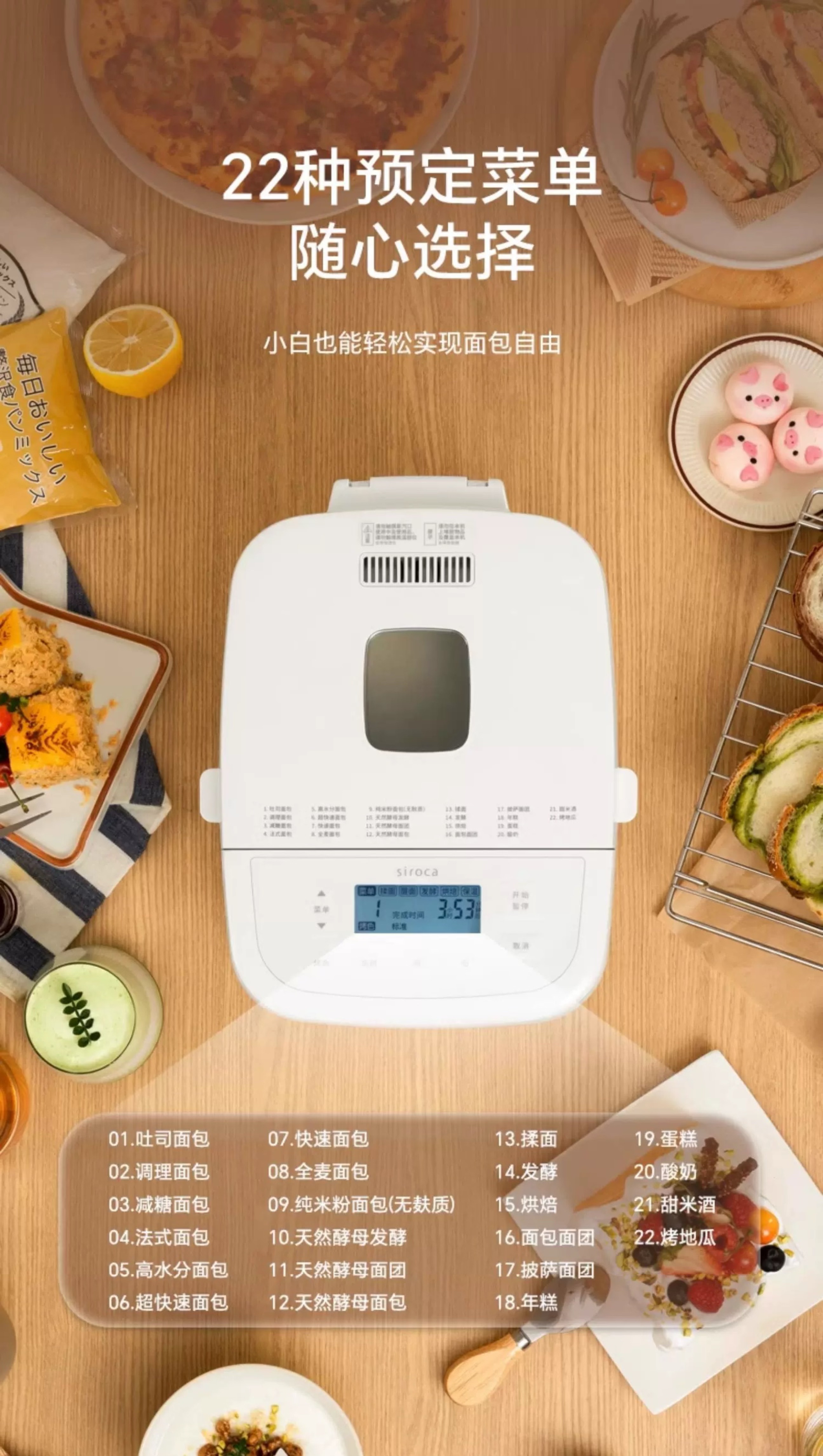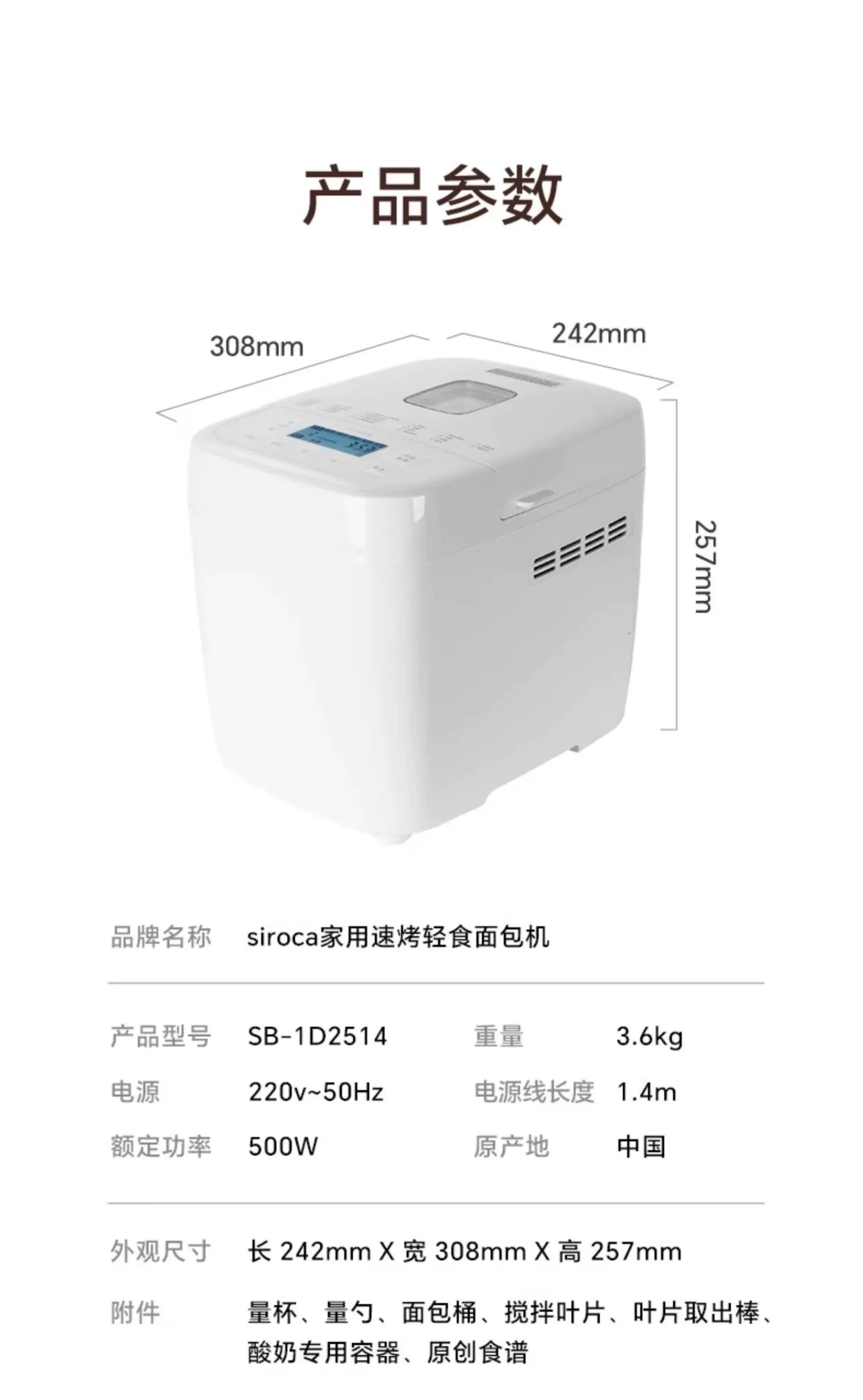 日本 西罗卡siroca 面包机 家用全自动多功能小型早餐发酵和面吐司机