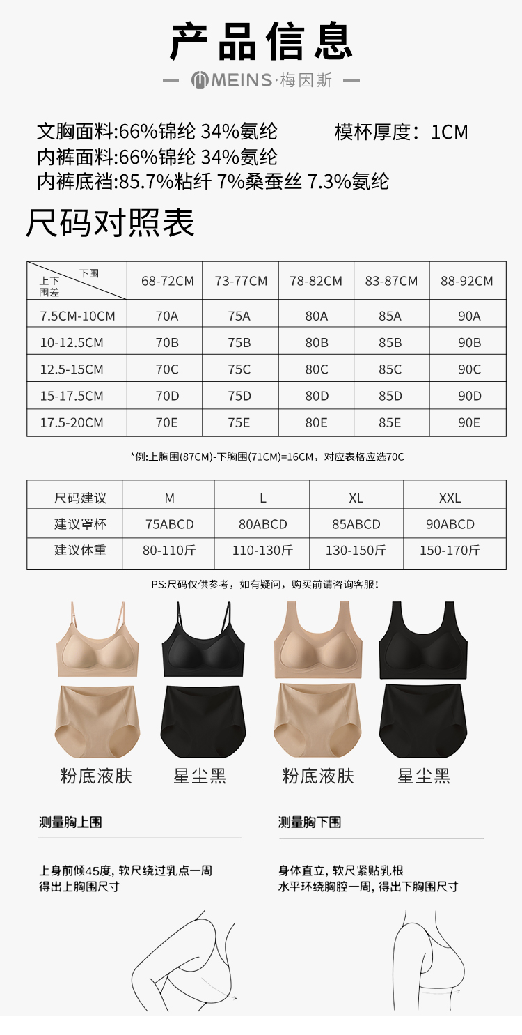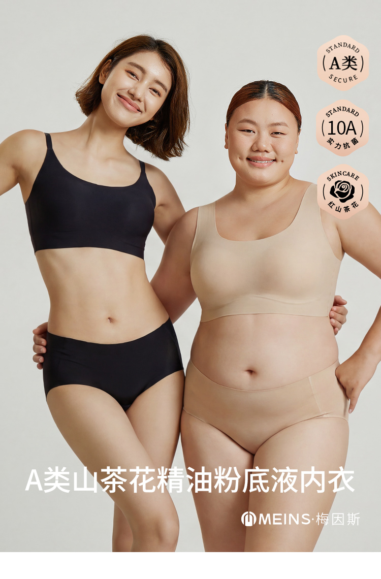 “超值2件装 限时加赠同款内裤2条”MEINS/梅因斯 红山茶花精油粉底液内衣 细肩带/宽肩带
