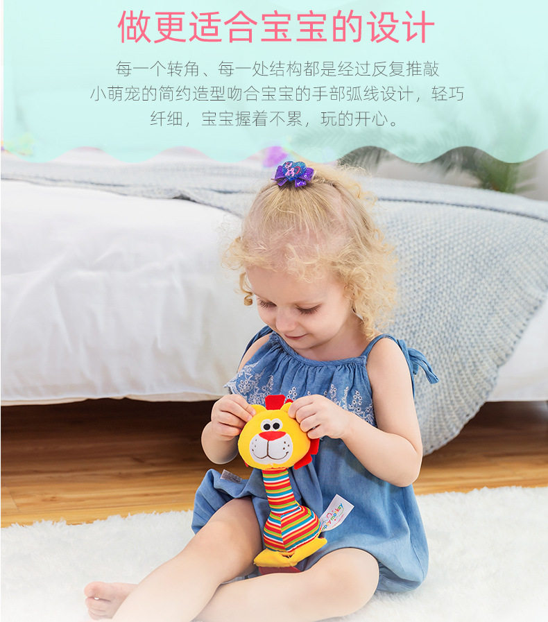 第一,知觉感观发展;色彩柔和的面料、清脆的响声,可刺激婴儿的视觉、听觉、触觉神经。