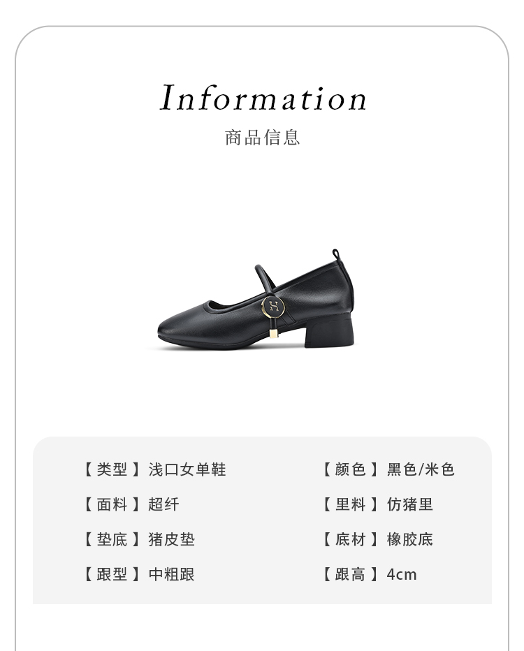 经典鲨2024年秋新款纯色百搭圆头中粗跟通勤浅口舒适单鞋女KW163-D37091