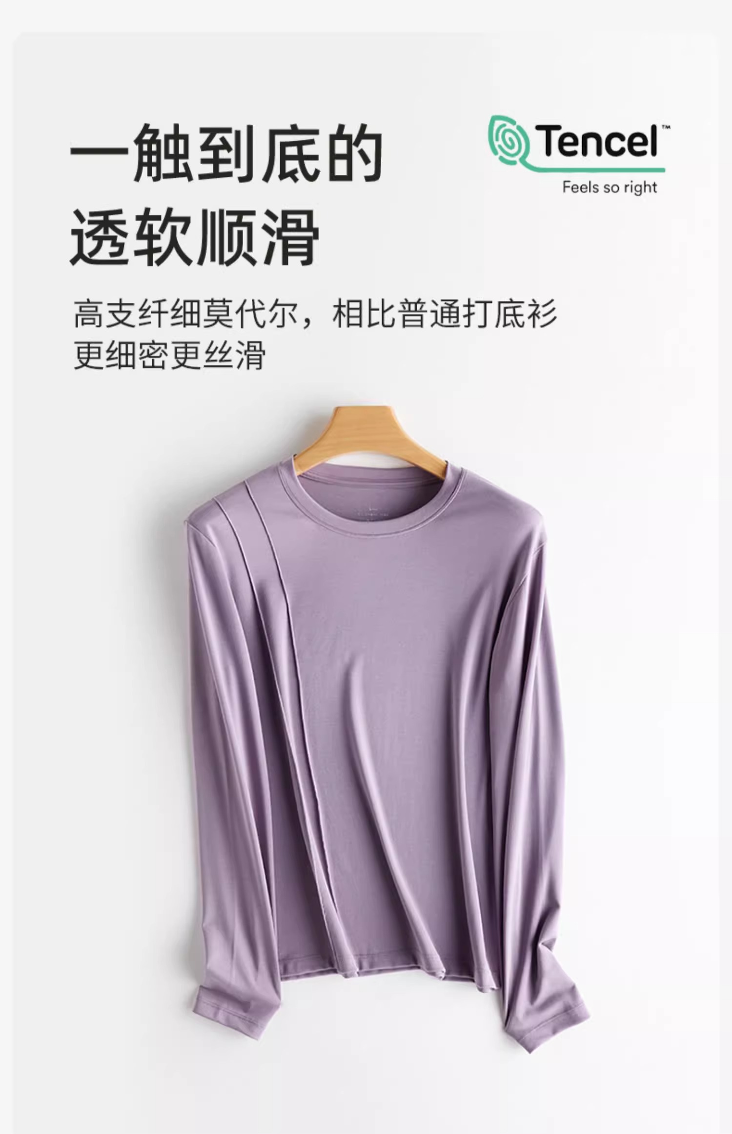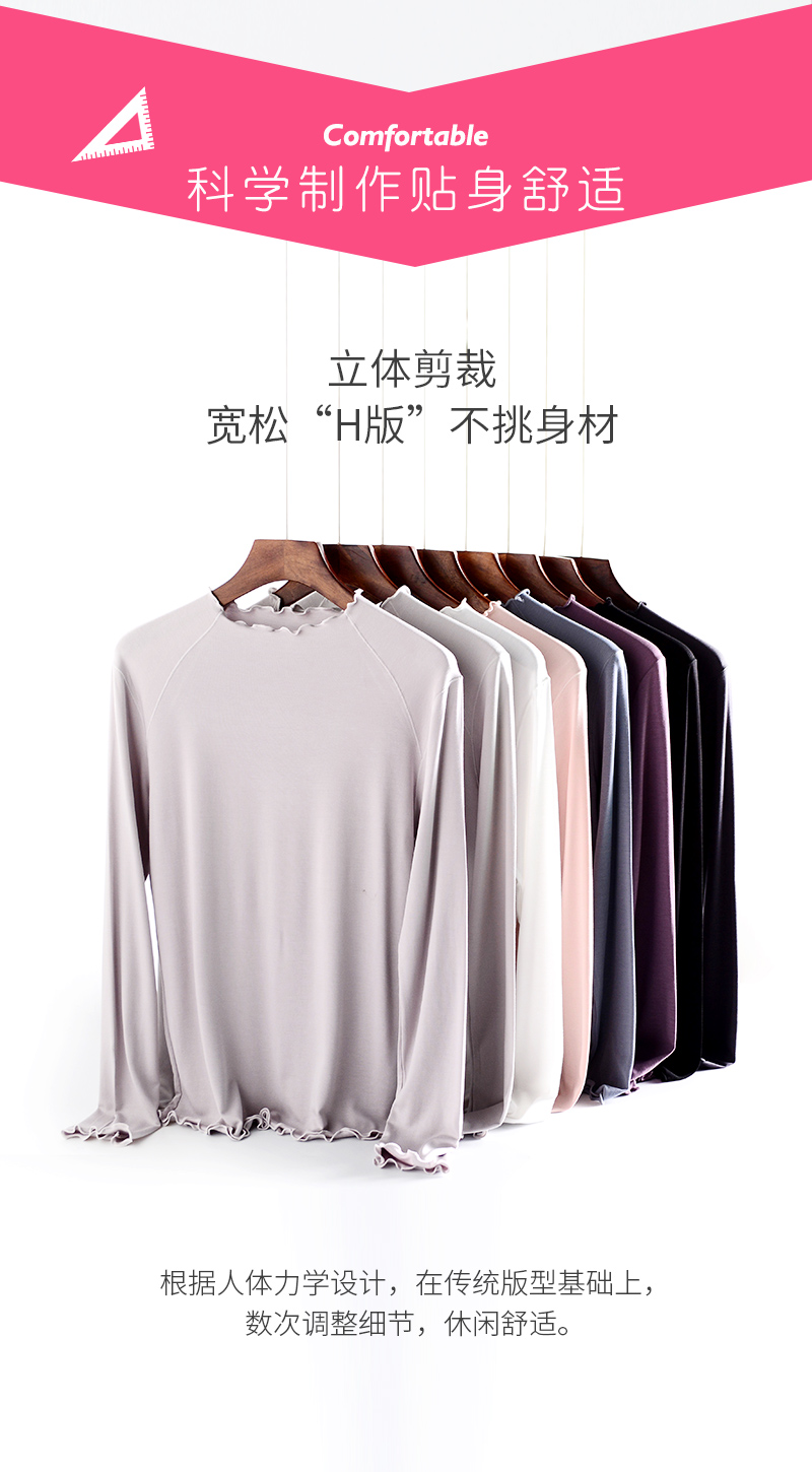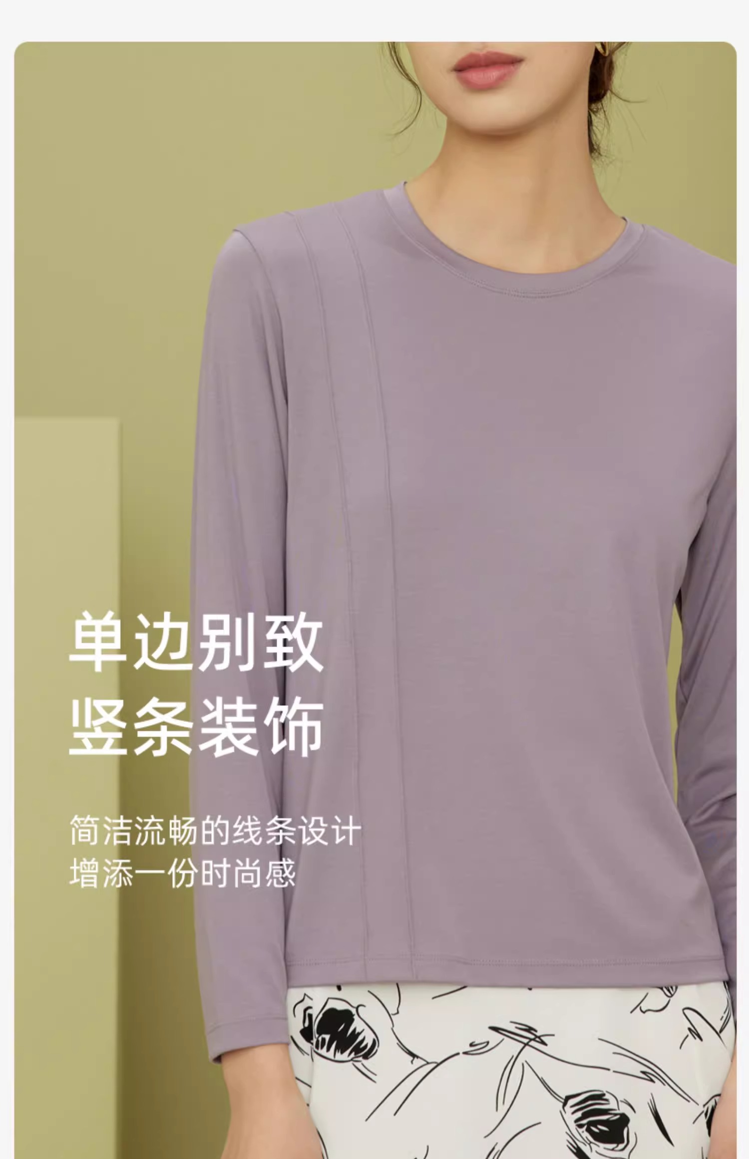 weyo秋冬新款女兰精莫代尔纯色简约上衣圆领修身长袖T恤打底衫17303、17301